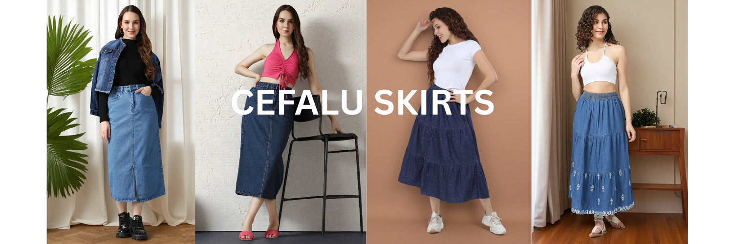 Cefalu®️ Women Dark Blue Denim Cotton Skirt