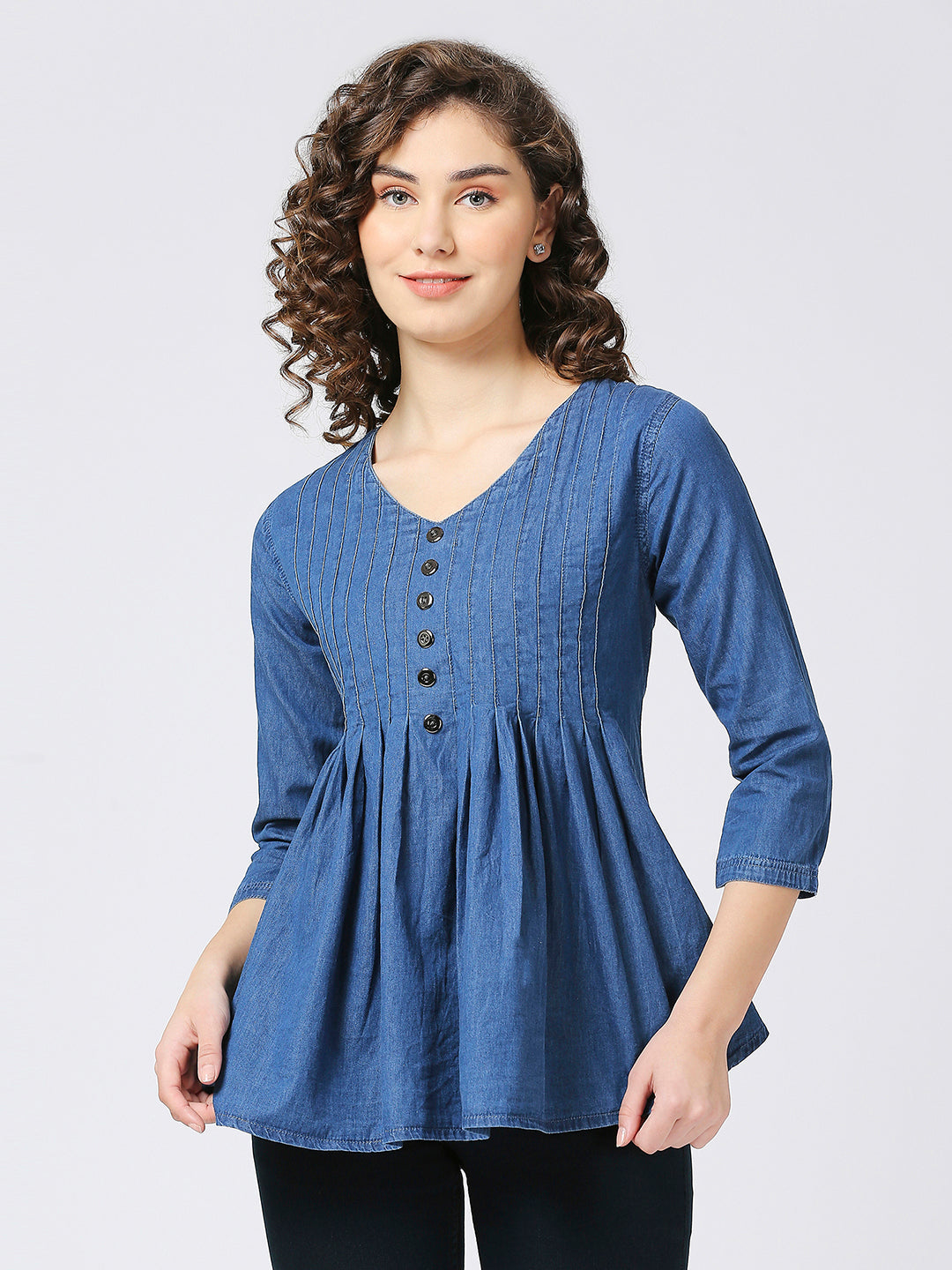 Cefalu®️ Casual Denim top for women with pintuck pattern