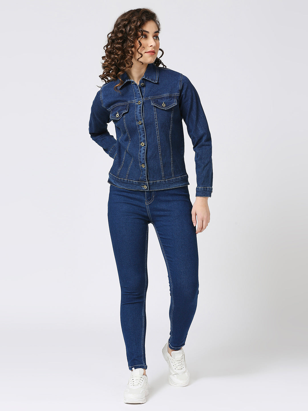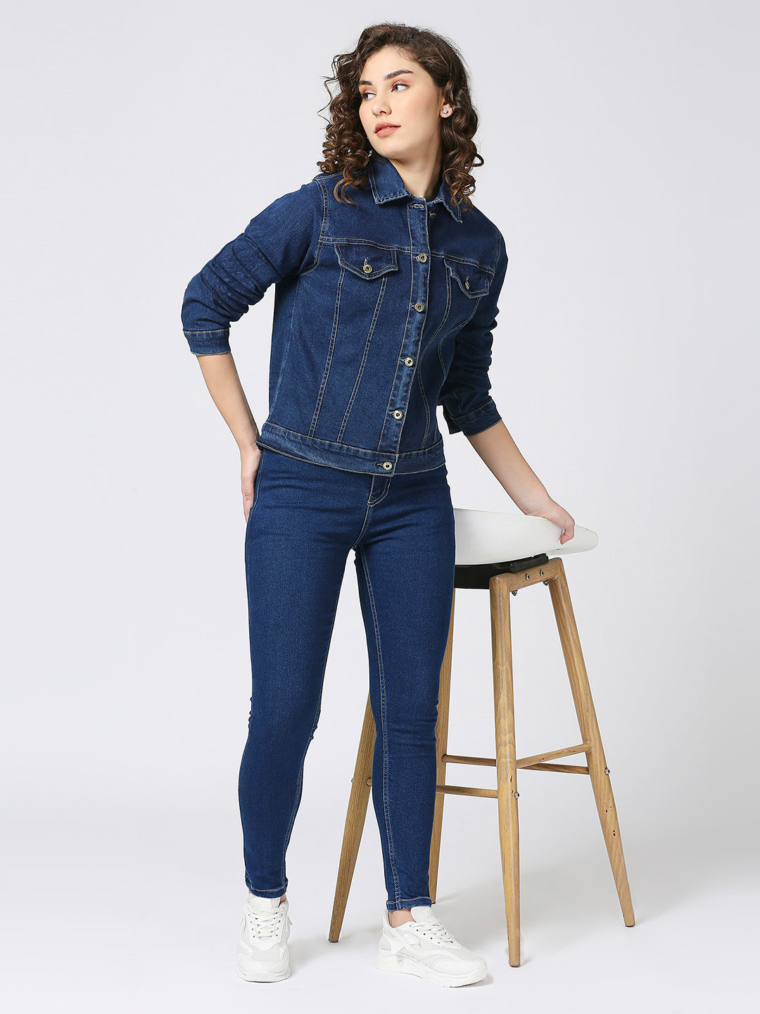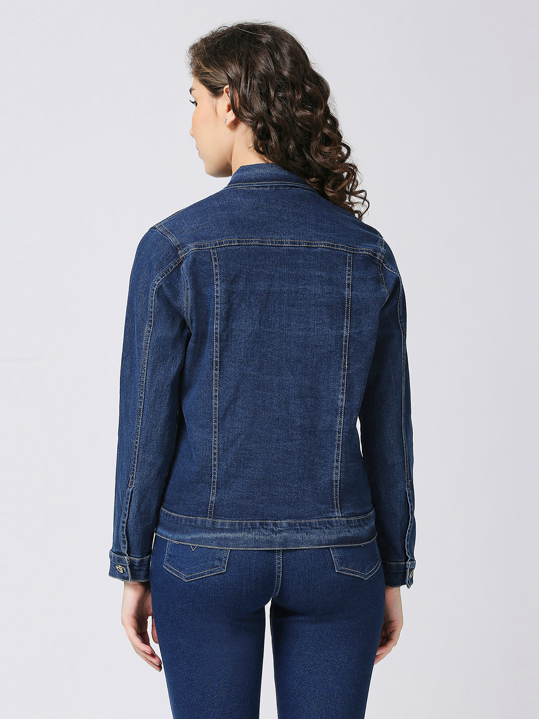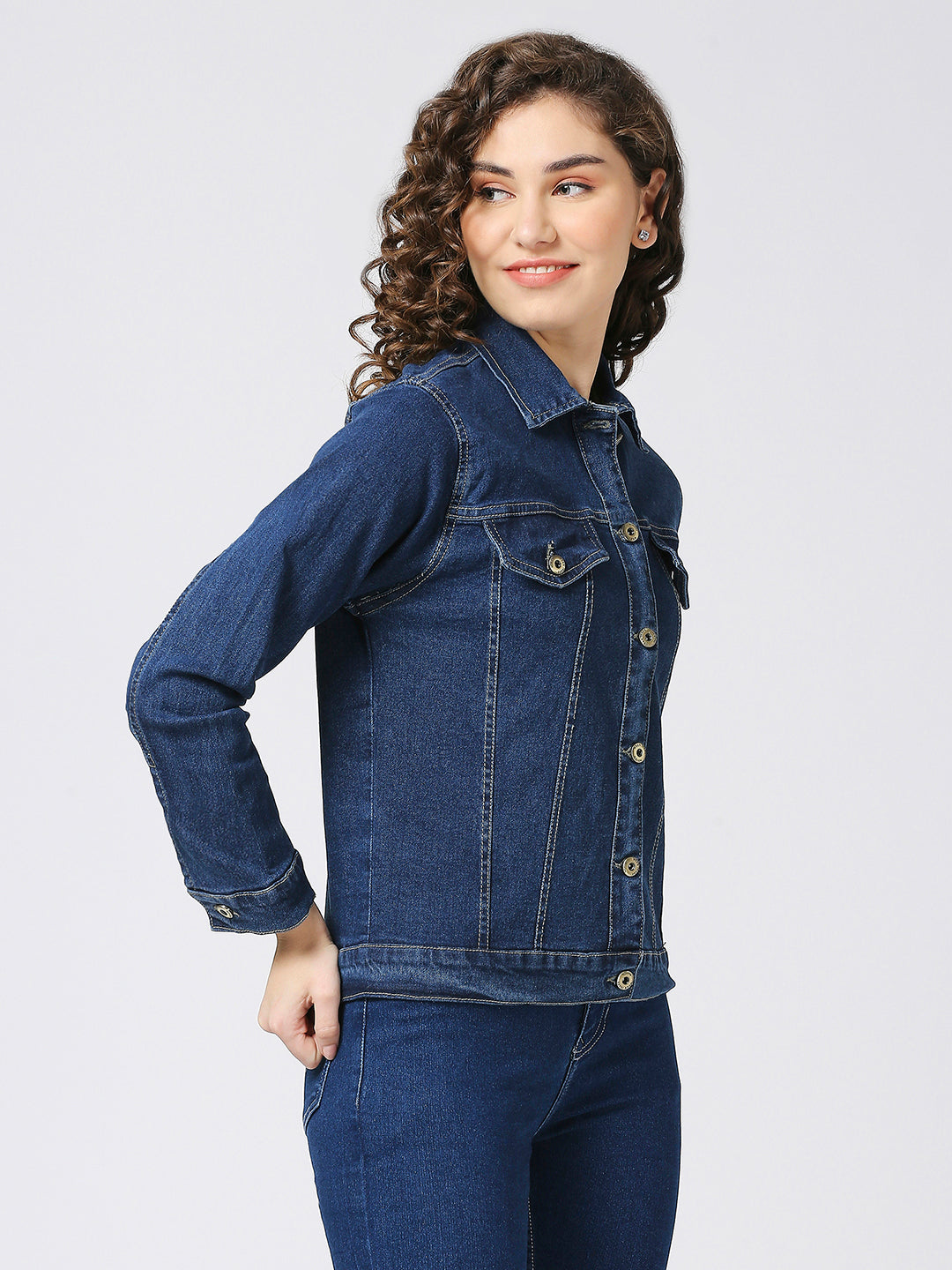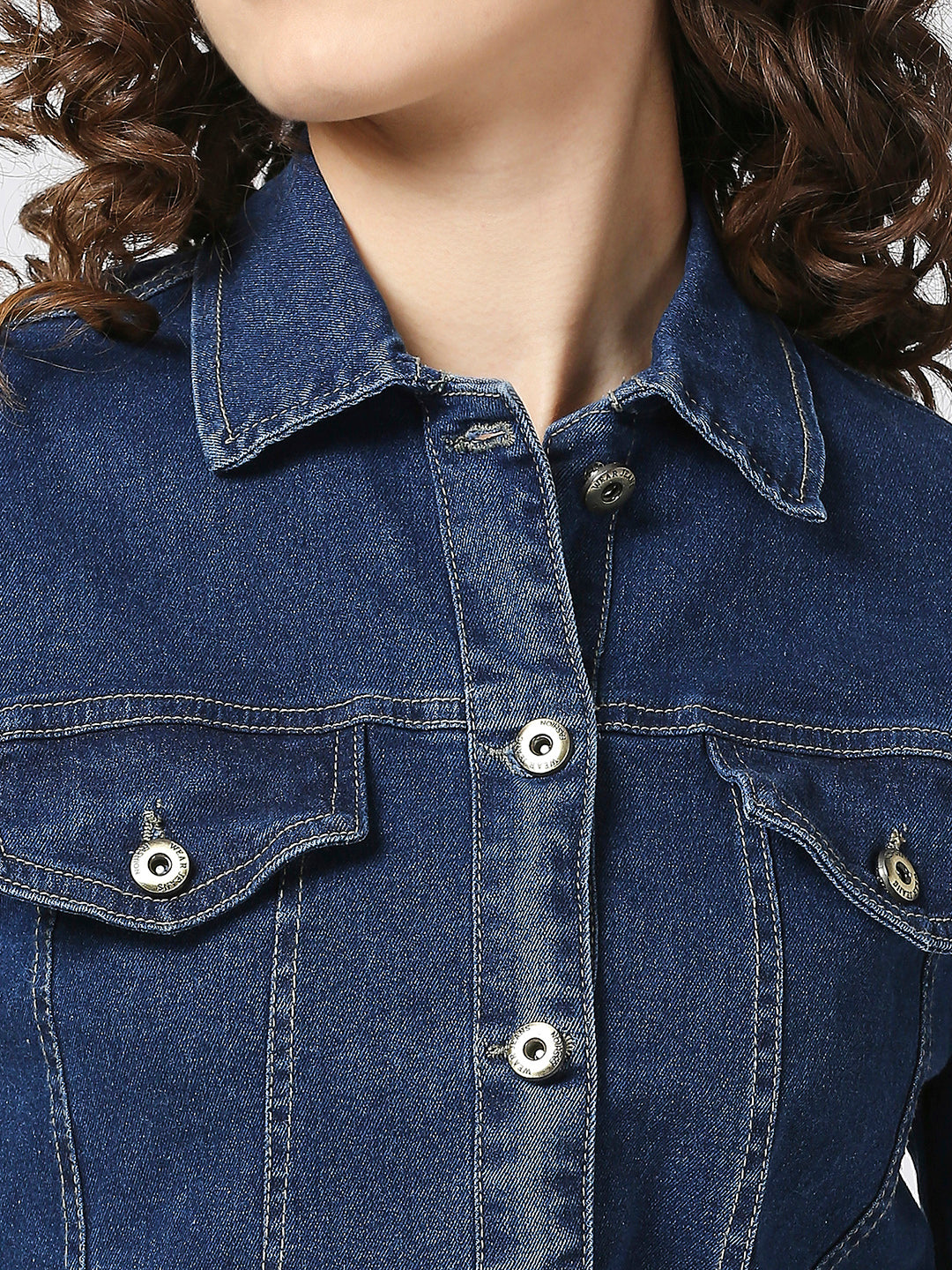 This Cefalu Dark Blue Denim Jacket for women is made from durable and high-quality denim material, ensuring its longevity. Its waist length, full sleeves, and spread collar make it the perfect layering piece for a casual, stylish look. With a solid design and button-down closure, this jacket is a must-have for any wardrobe.