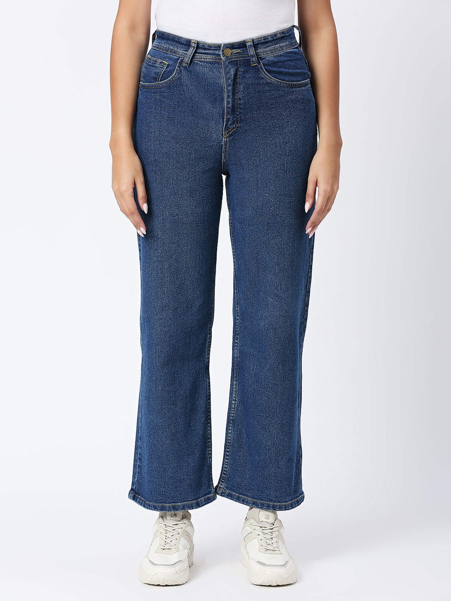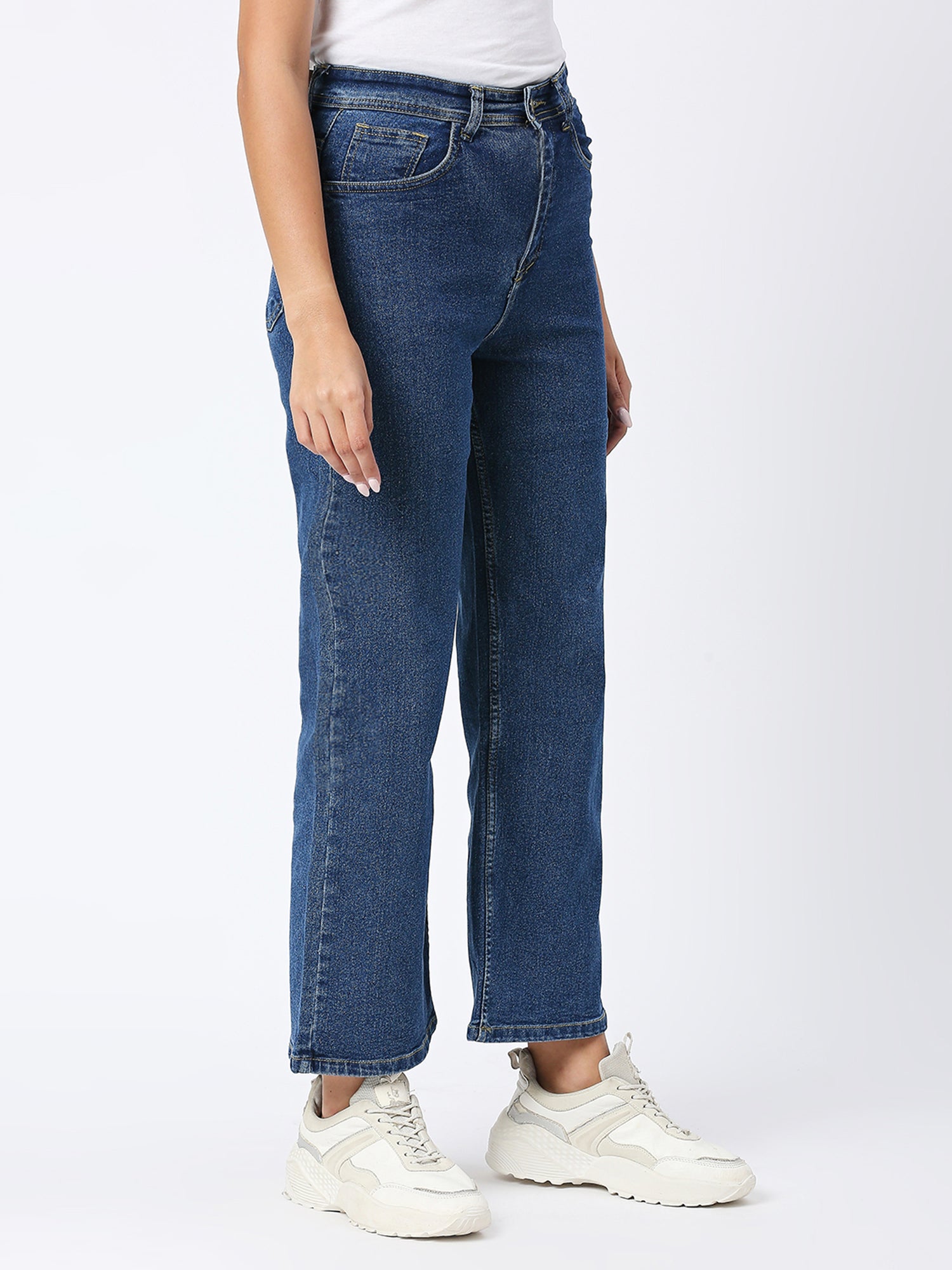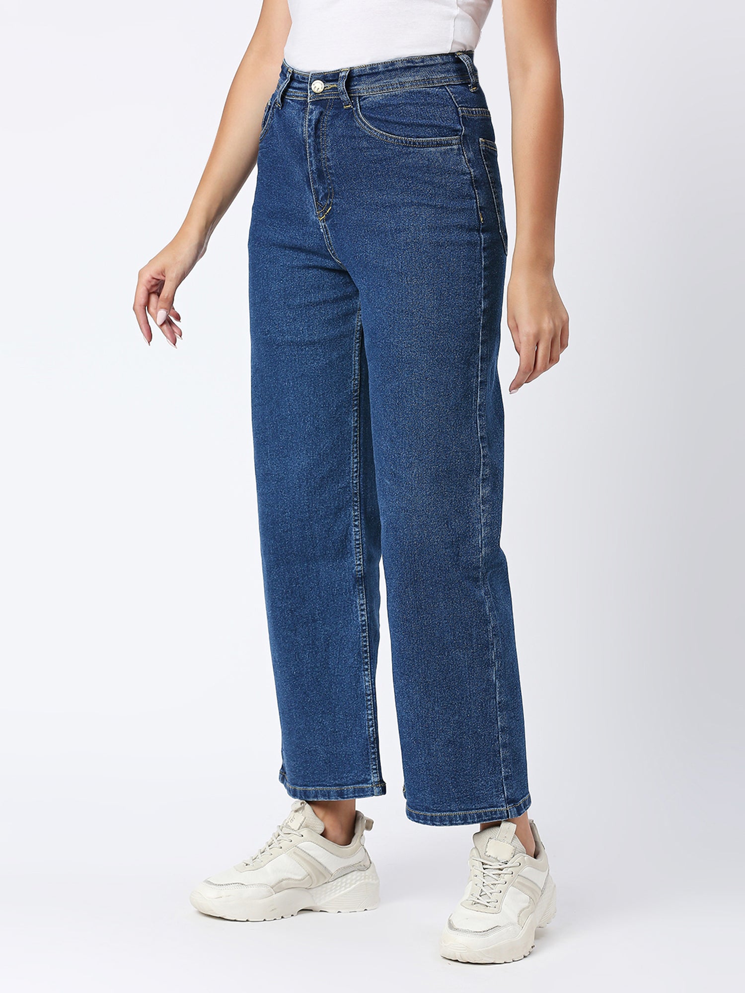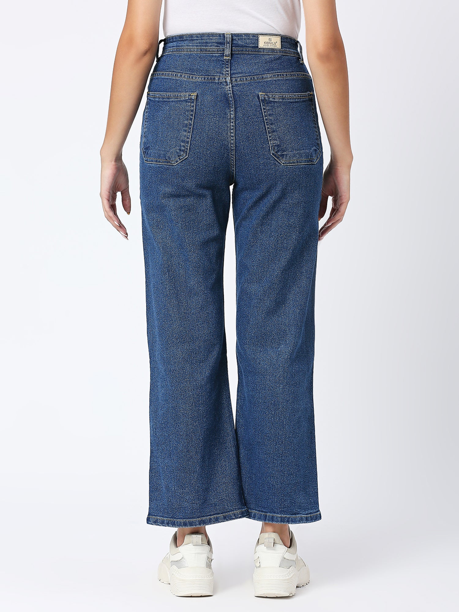 Cefalu Boyfriend Jeans High Waist Wide Straight Leg Denim Pants with Pockets