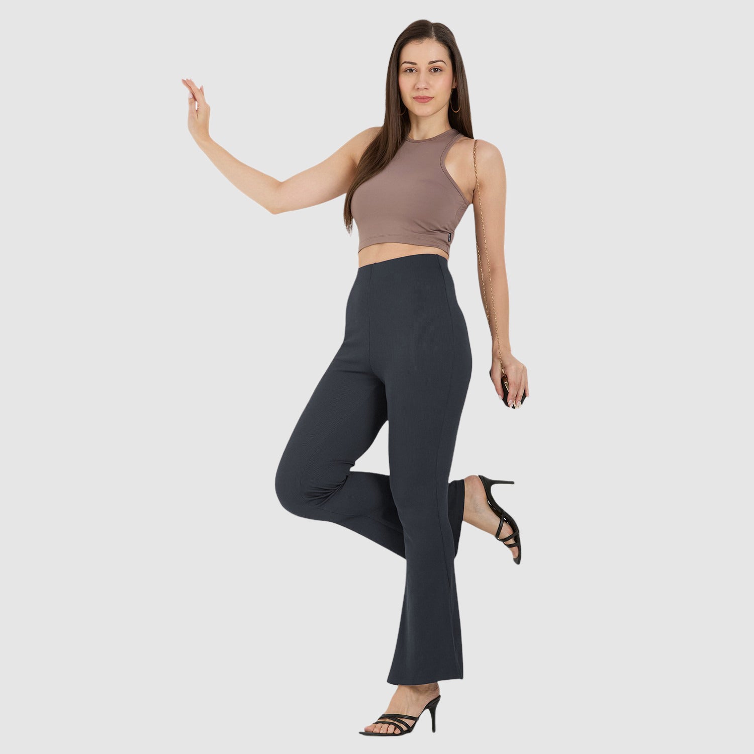 Cefalu Women Dark Grey Flared Pants