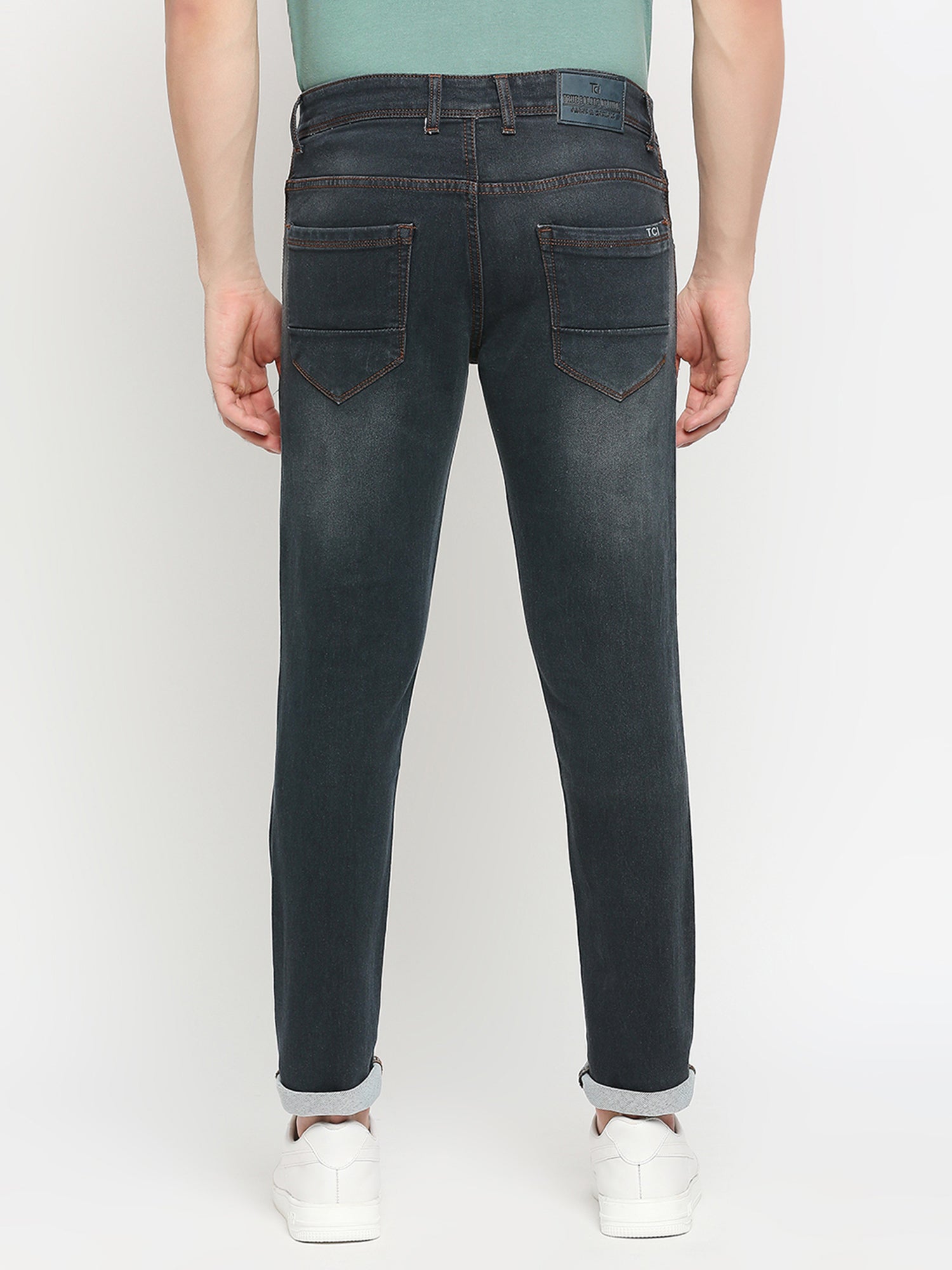 Designed for TCI comfort and style, these Dark Grey Men's Slim Fit Stretchable Fabric Casual Wear Denim Jeans are perfect for any occasion. Made with Poly Knit fabric and featuring a stretchable fit, these slim fit jeans also have whisker, spray, print and embroidery details. Stay stylish and comfortable in these full length jeans under 799.
