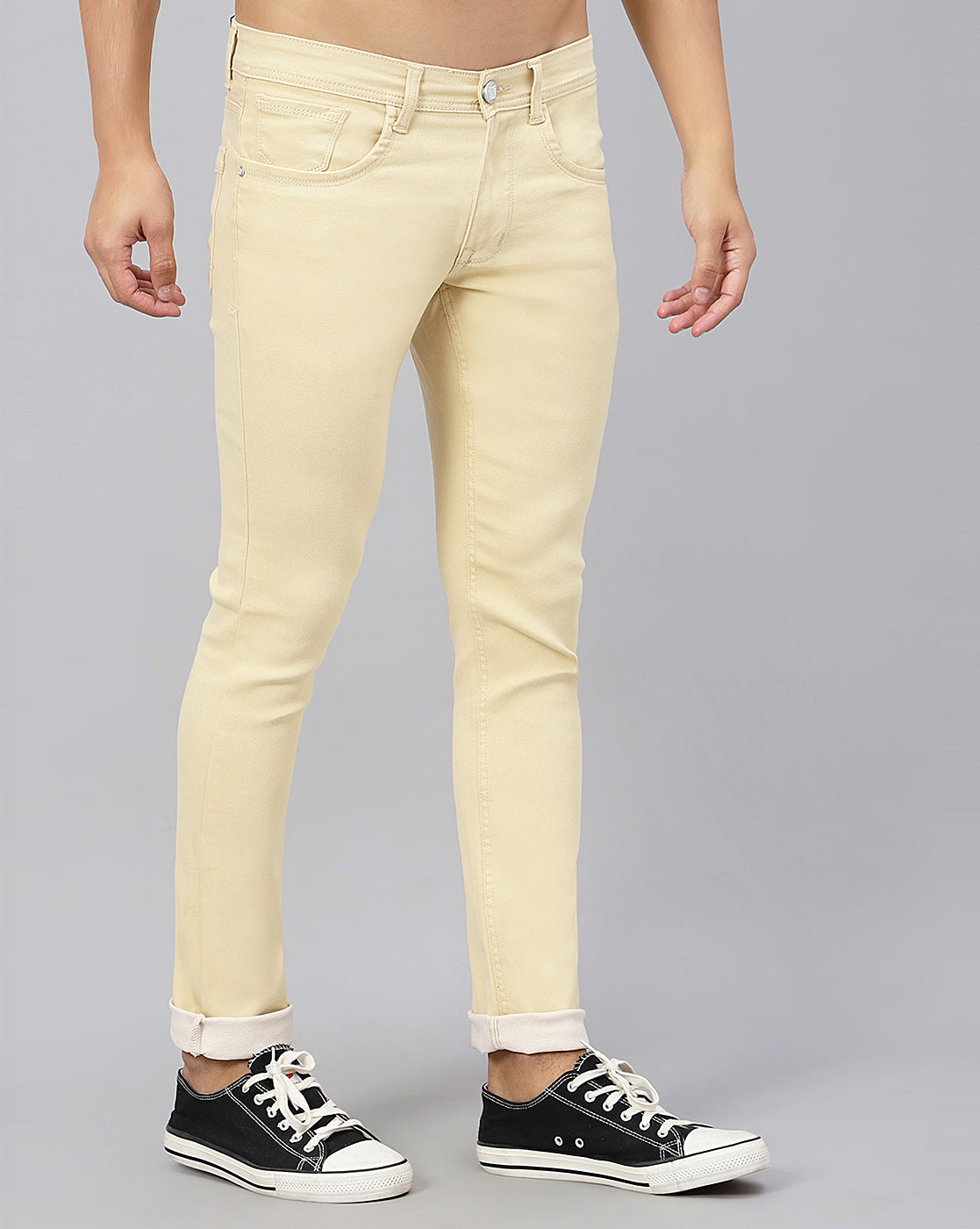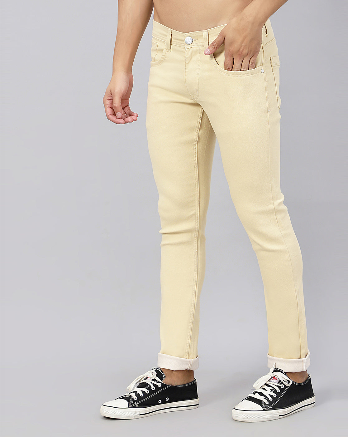 Upgrade your wardrobe with the TCI Men Beige Slim Fit Jeans. Made from premium quality denim, these jeans are durable, breathable, and soft to the touch. The slim fit design provides a sleek and modern look, while the stretchable fabric offers maximum comfort and flexibility. Perfect for any occasion, these solid color jeans are a must-have for any fashion-forward man.