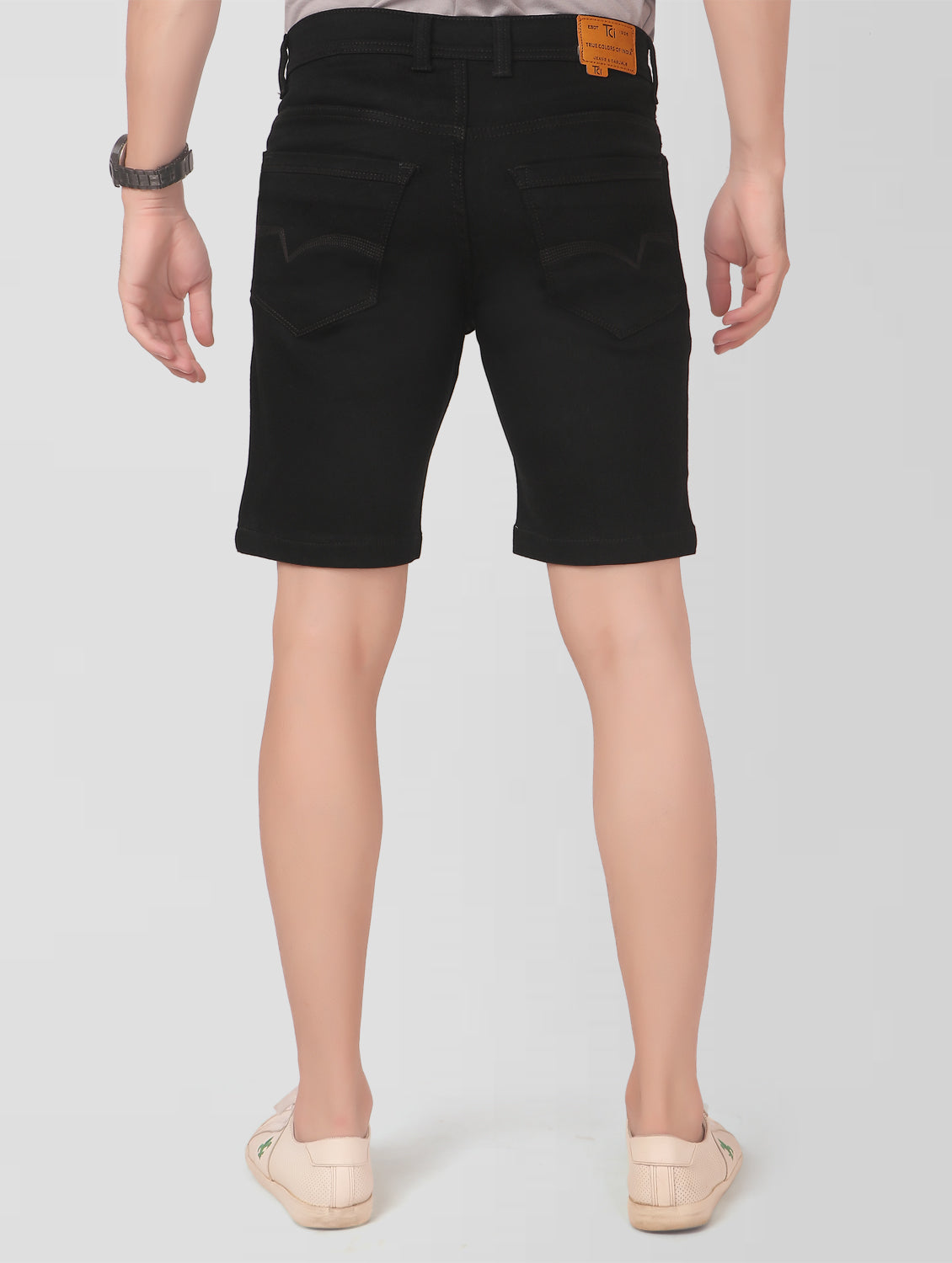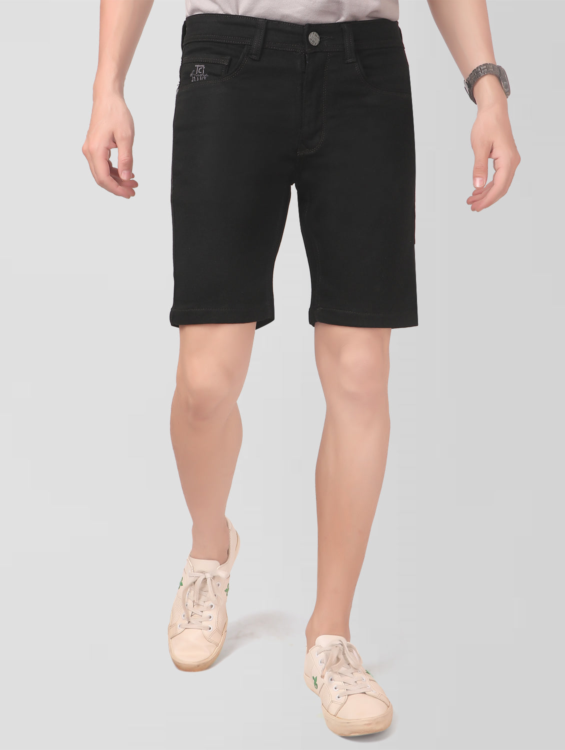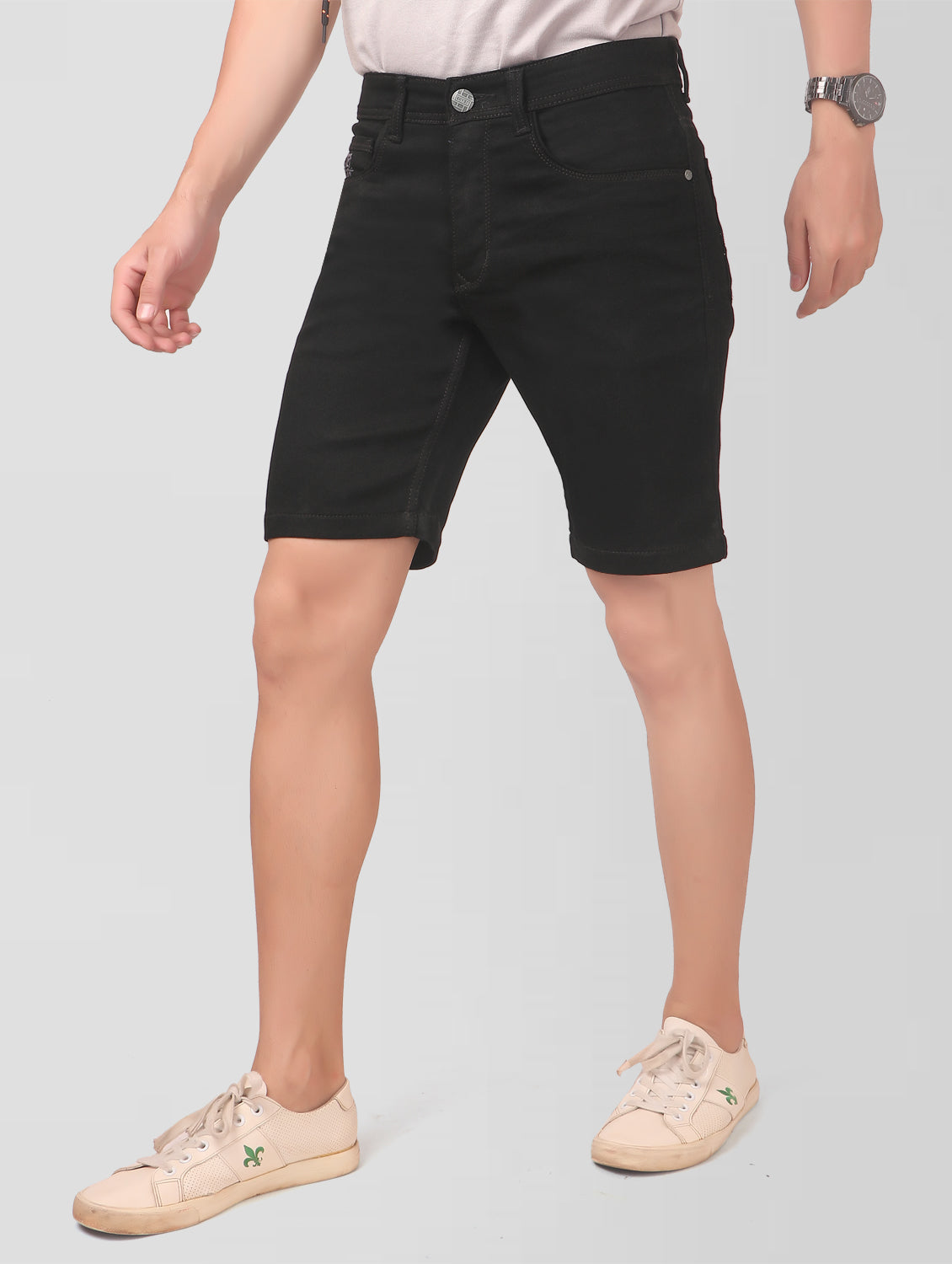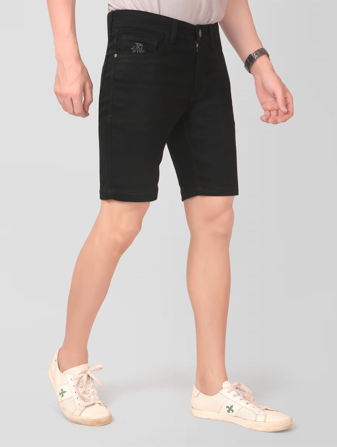 Upgrade your summer wardrobe with our Men's Black Regular Cotton Shorts. Made with stretchable black cotton fabric, these shorts offer all-day comfort. With 5 pockets, a zip fly with button closure, and a mid rise waist, these solid black shorts are functional and stylish. Perfect for any occasion, these highly durable and stretchable shorts are a must-have for any man.