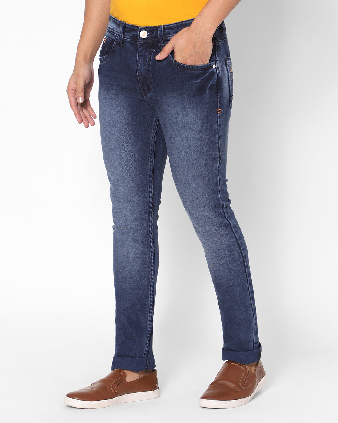 Elevate your wardrobe with our Men's Dark Blue Knitted Cotton Jeans. With a regular fit and stretchable fabric, these jeans offer both comfort and style. The light faded finish adds a touch of uniqueness to the classic design. Crafted from premium quality cotton, these jeans provide all-day comfort and durability. Perfect for casual or semi-formal occasions.
