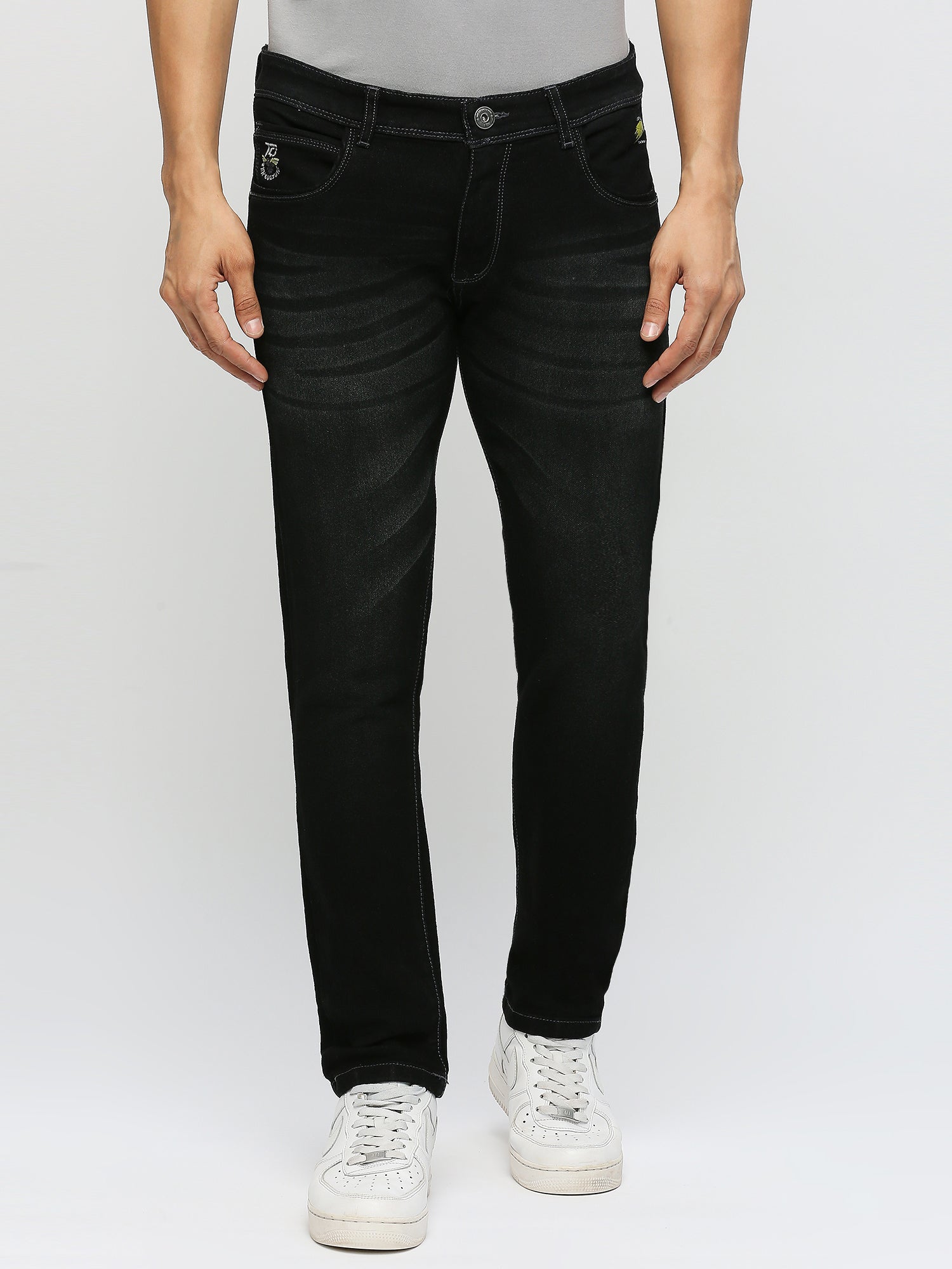 True Colors Of India Men's Jeans, Step up your style game with this Slim fit, Full length, Poly Knit Denim / jeans highly stretchable. Featuring a utility-driven design with whisker, spray on front and back pannel. It has embroidery on coin pocket and small statement print. multiple pockets , zipper fly, button closure, and a solid colour. Crafted from premium quality fabric for all-day comfort and durability. These jeans are an excellent choice for casual and semi-formal wear.