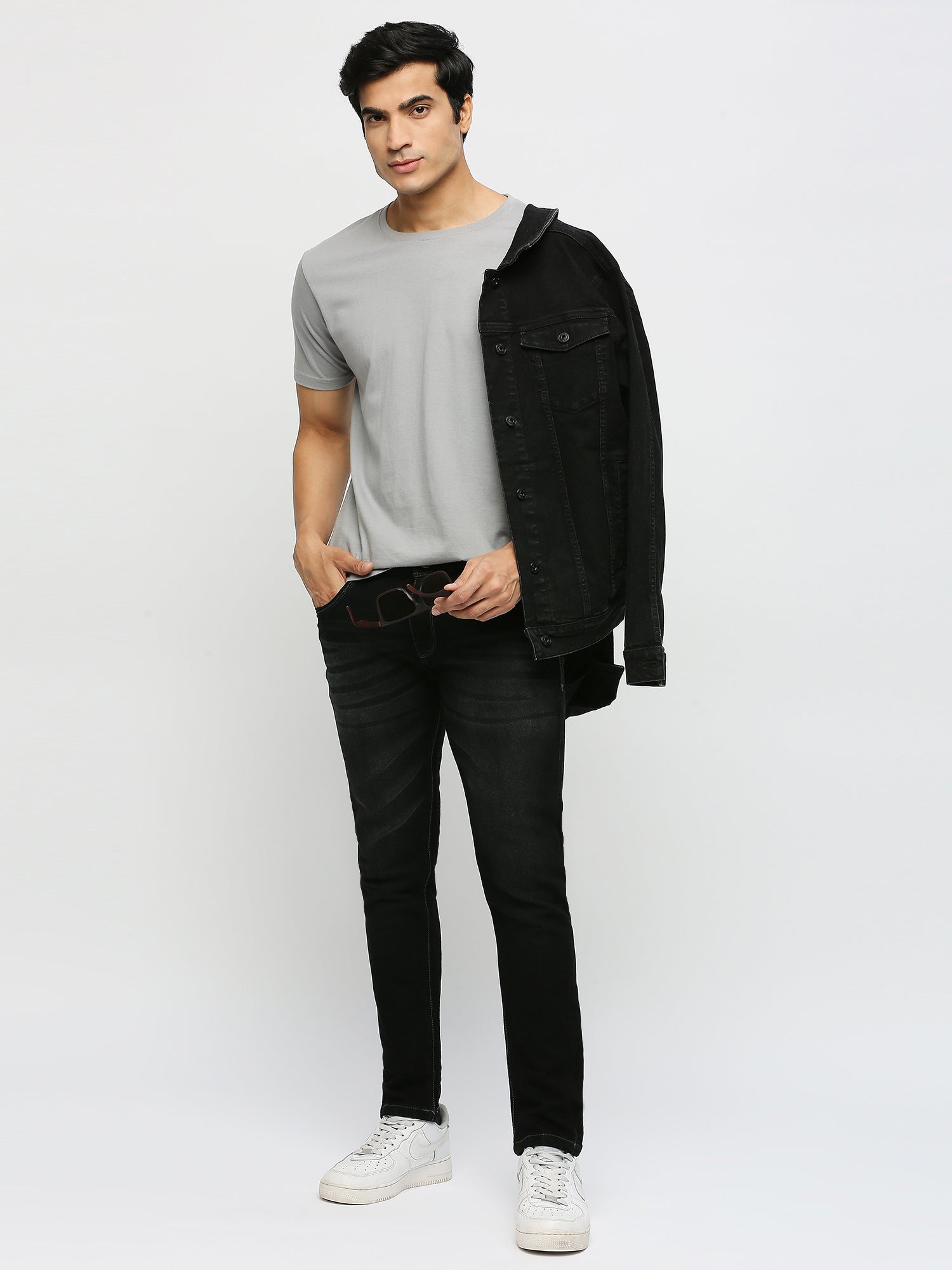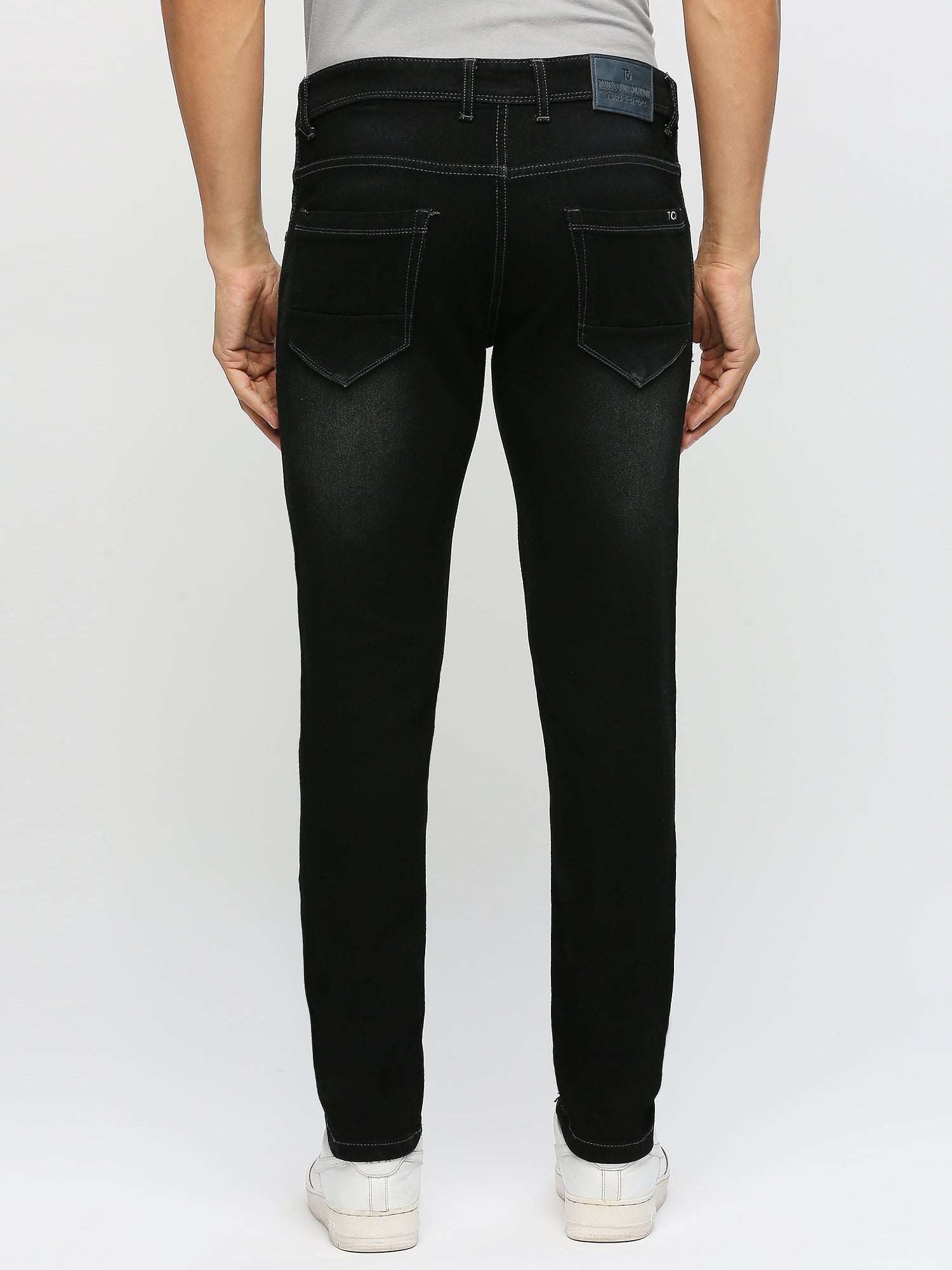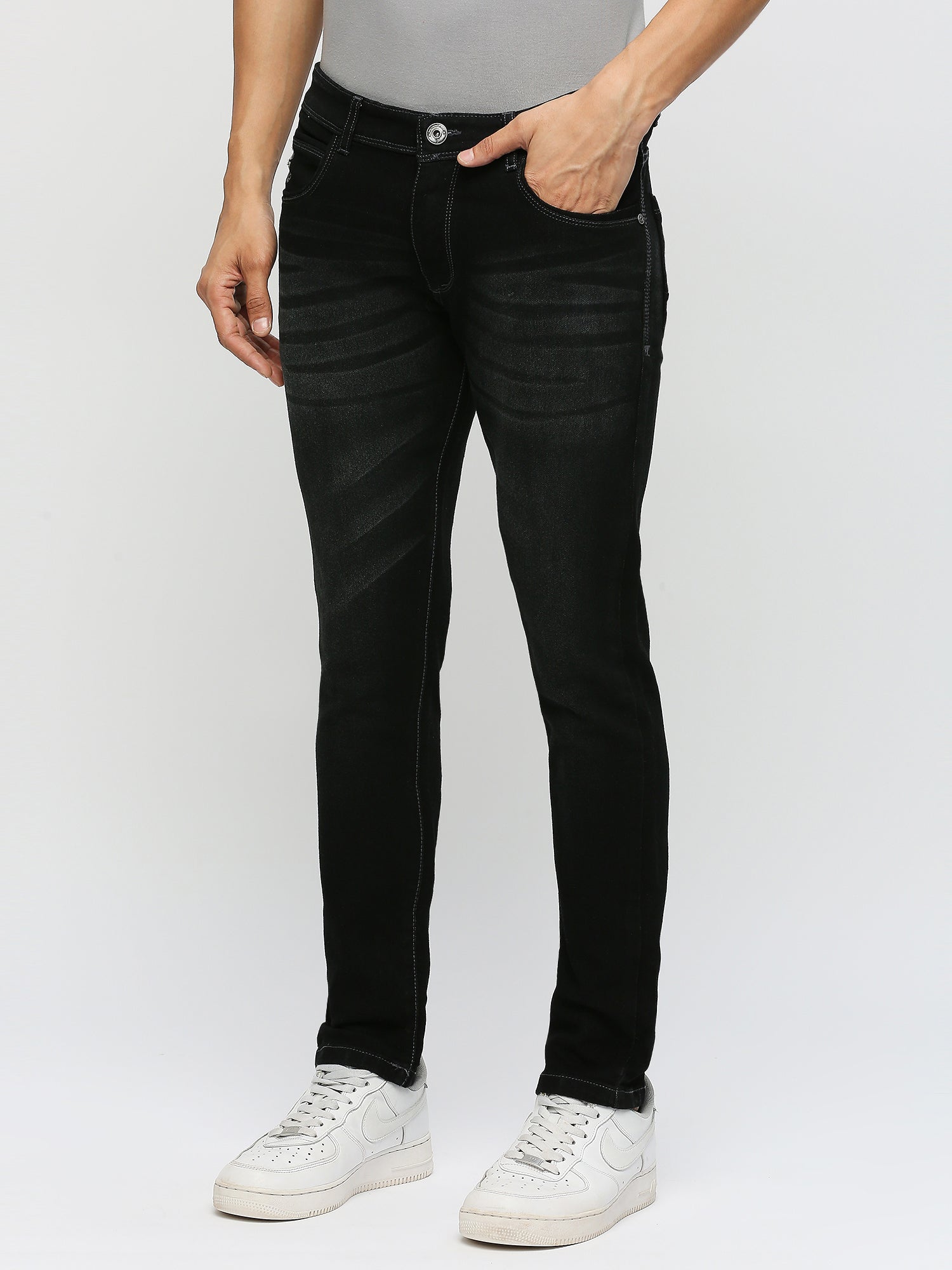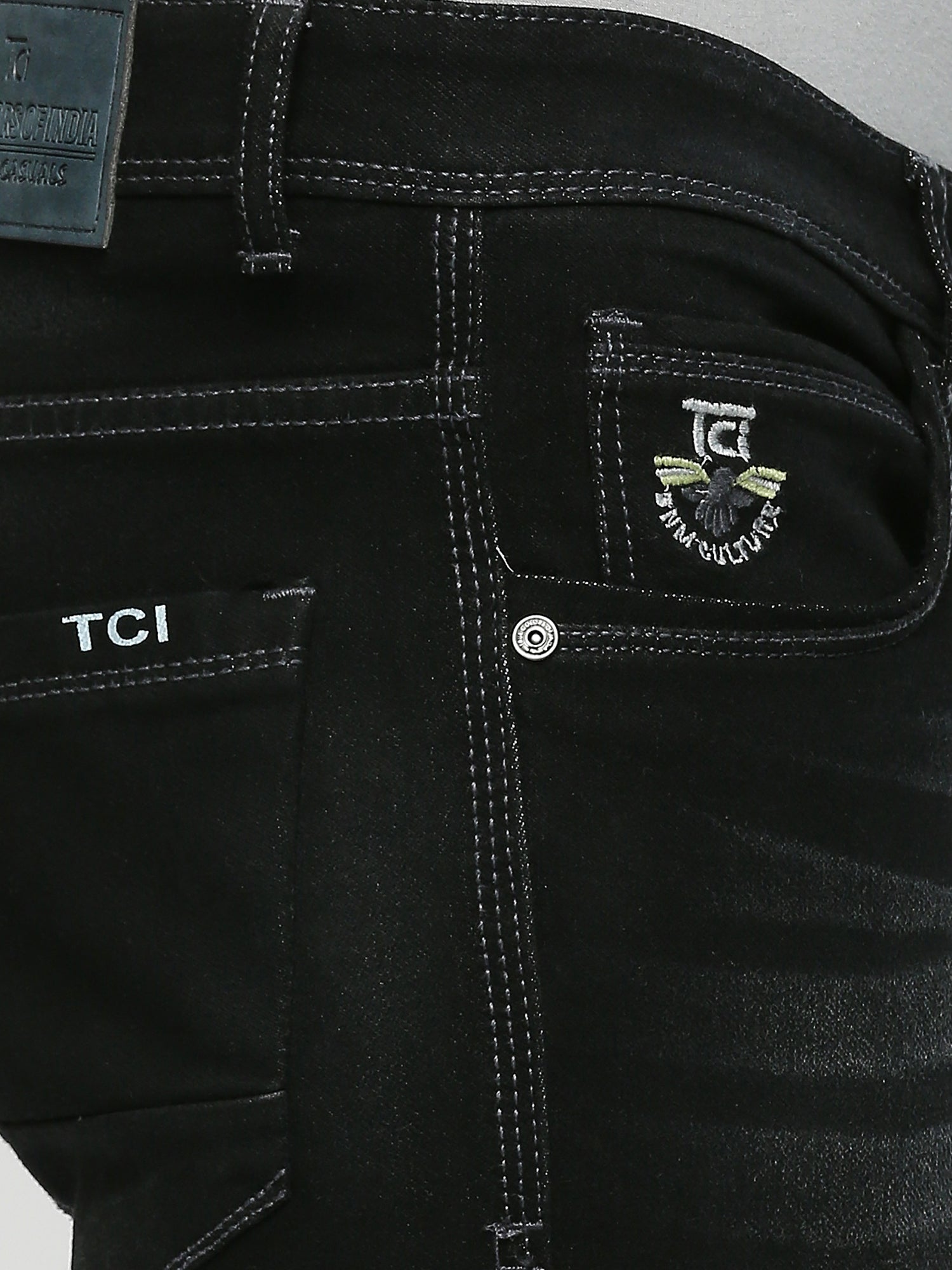 True Colors of India®️ (TCI) Men's Slim Fit Poly Knit stretchable whiskered Black jeans
