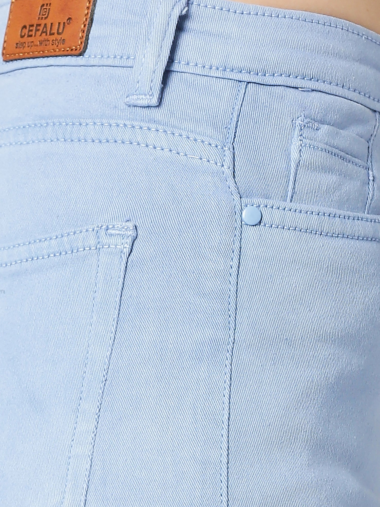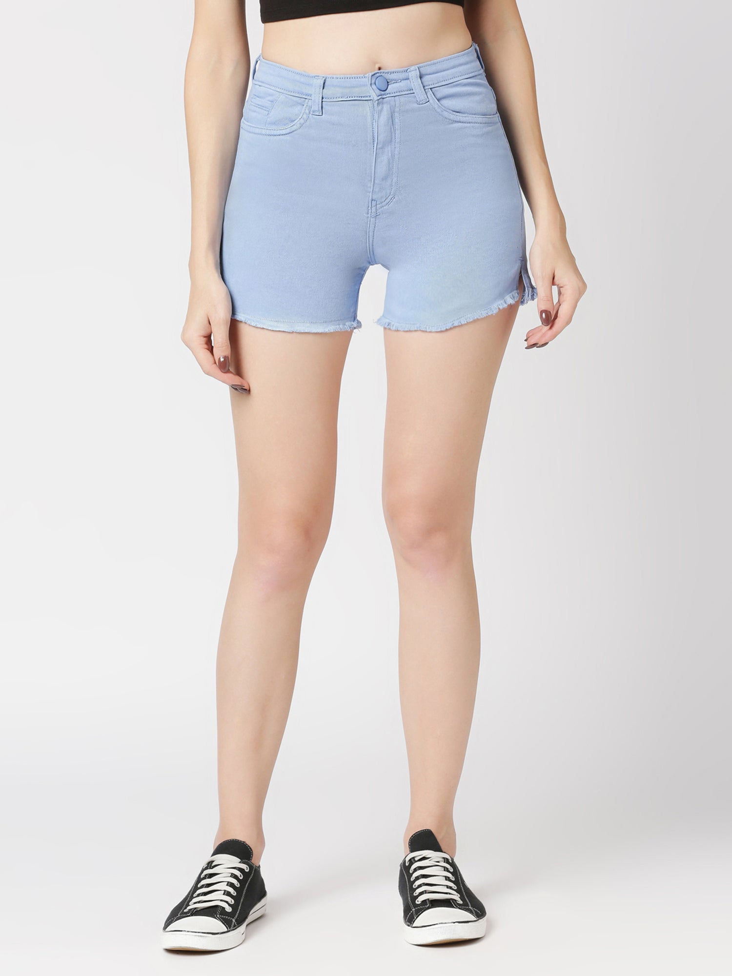 Cefalu®️ Solid Women Light Blue High Waist Denim Shorts