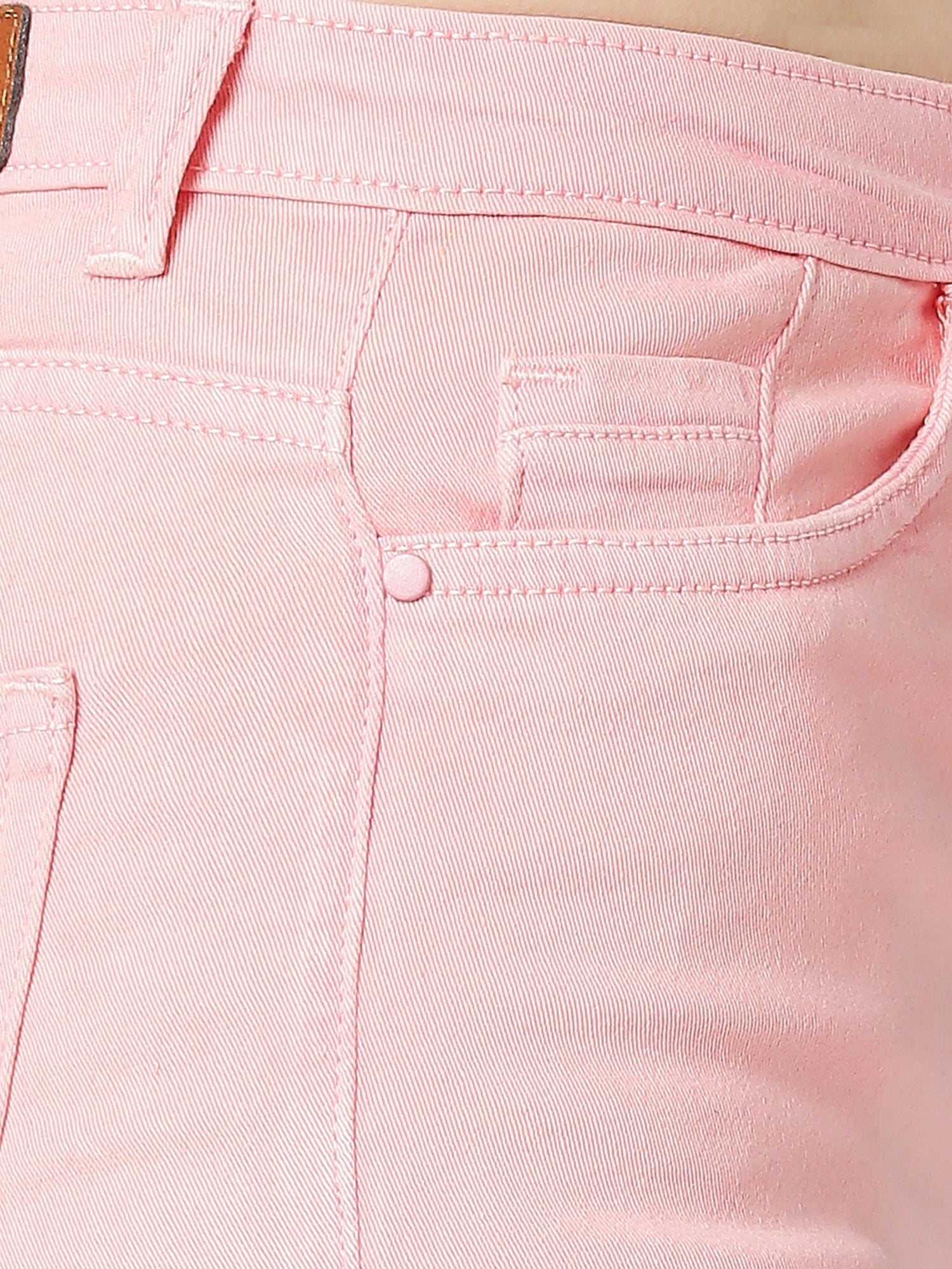 Upgrade your summer wardrobe with Cefalu Solid Women Pink High Waist Denim Shorts. Featuring a thigh-length skinny fit and high rise, these shorts will keep you cool and stylish. The chic wash and raw hem add an extra off-duty update while the single-button closure with belt hoops ensures a perfect fit. Don't forget to pair it with a beautiful top for a complete look.