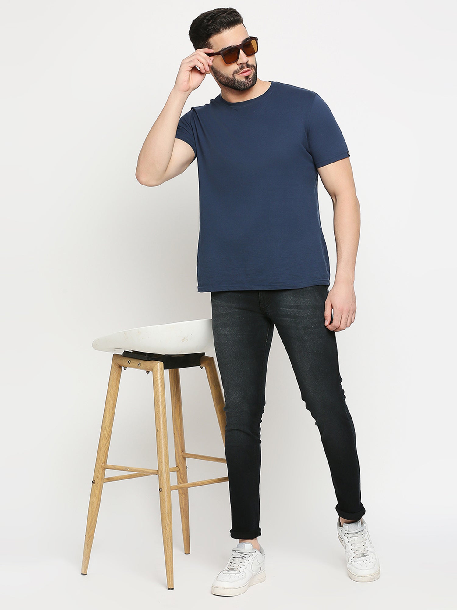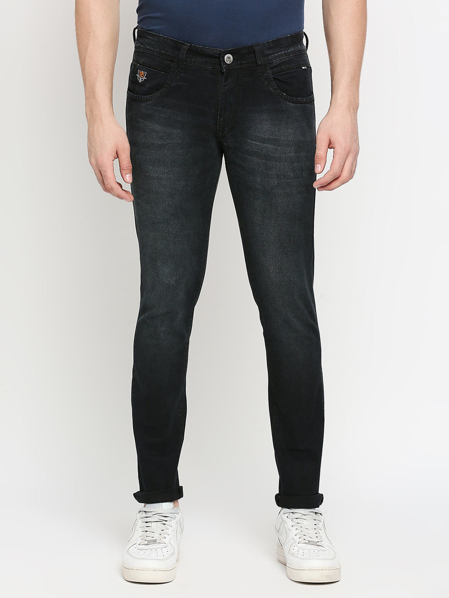 True Colors of India®️ (TCI) Black whisker Stretchable Casual Denim Cotton Satin Jeans Slim Fit Mid Rise full Length(42 inch)