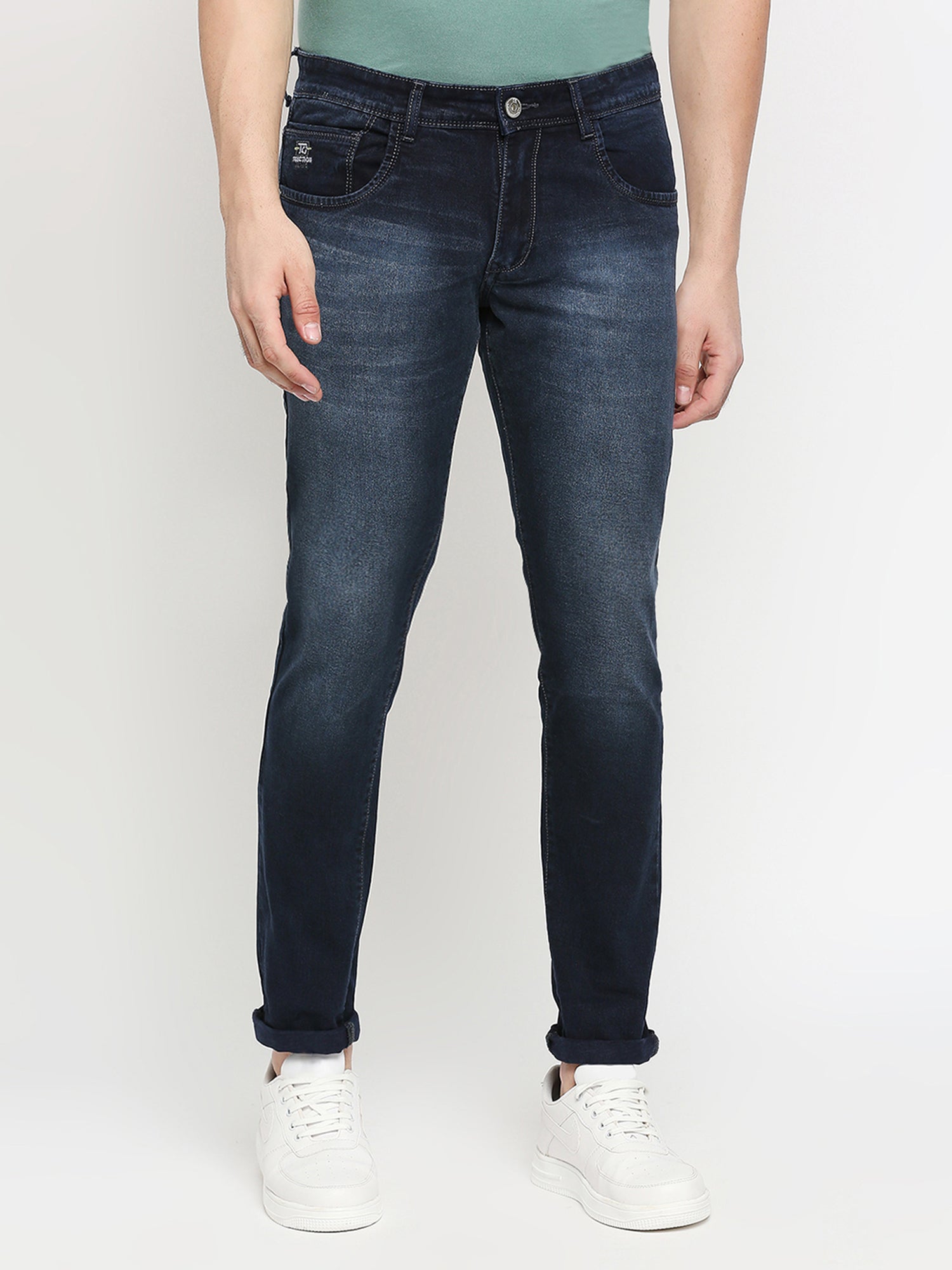 True Colors of India®️ (TCI) Corbon blue whisker Stretchable Casual Denim Cotton Satin Jeans Slim Fit Mid Rise full Length(42 inch)
