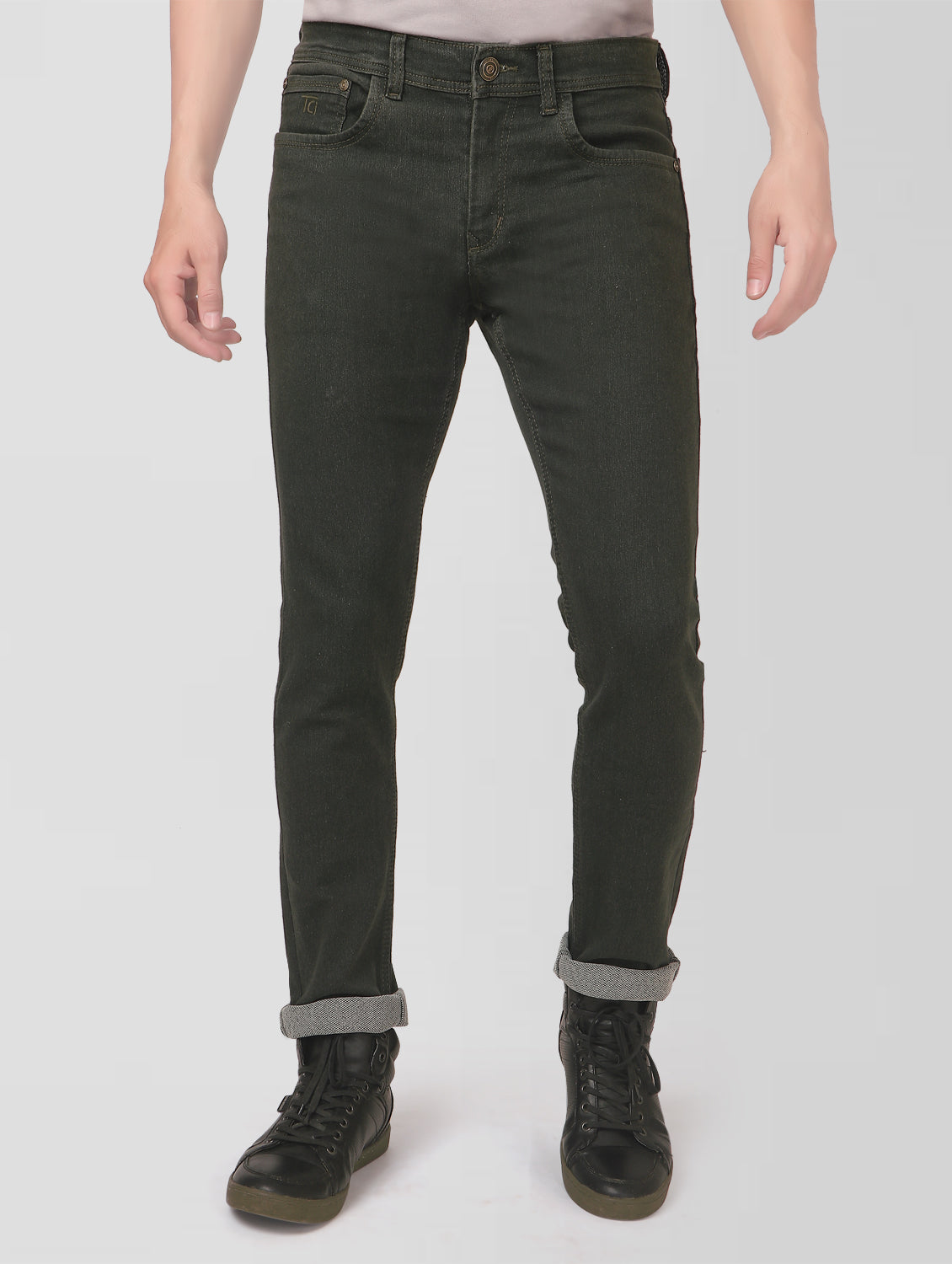 TCI Men’s Regular Fit Greenish Denim Jeans - Cotton Blend