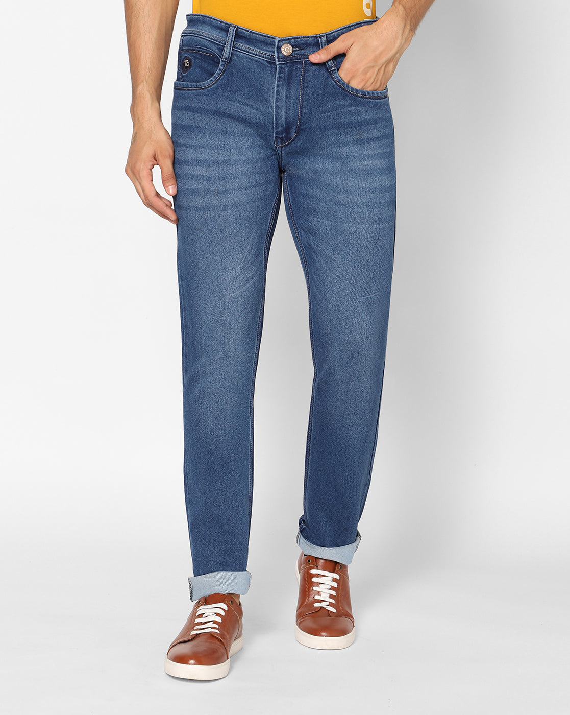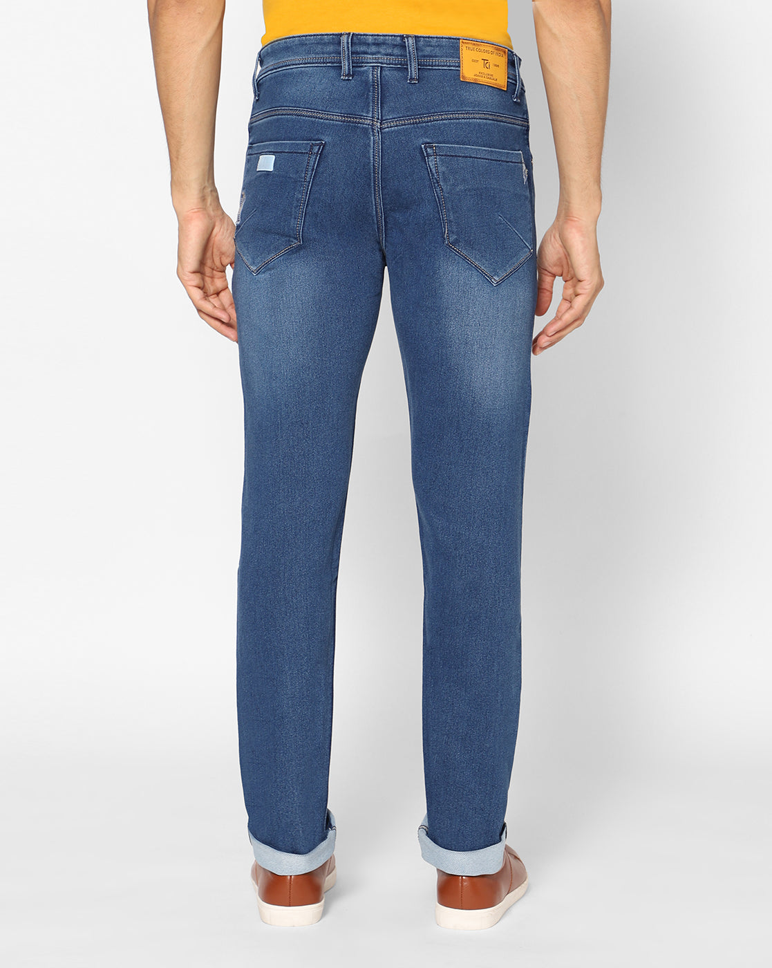 True Colors of India®️ (TCI) Men’s Stretchable Blue Denim Jeans || Regular Fit, Mid-Rise, Mildly Distressed