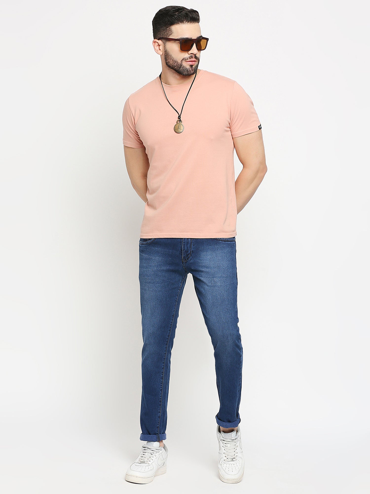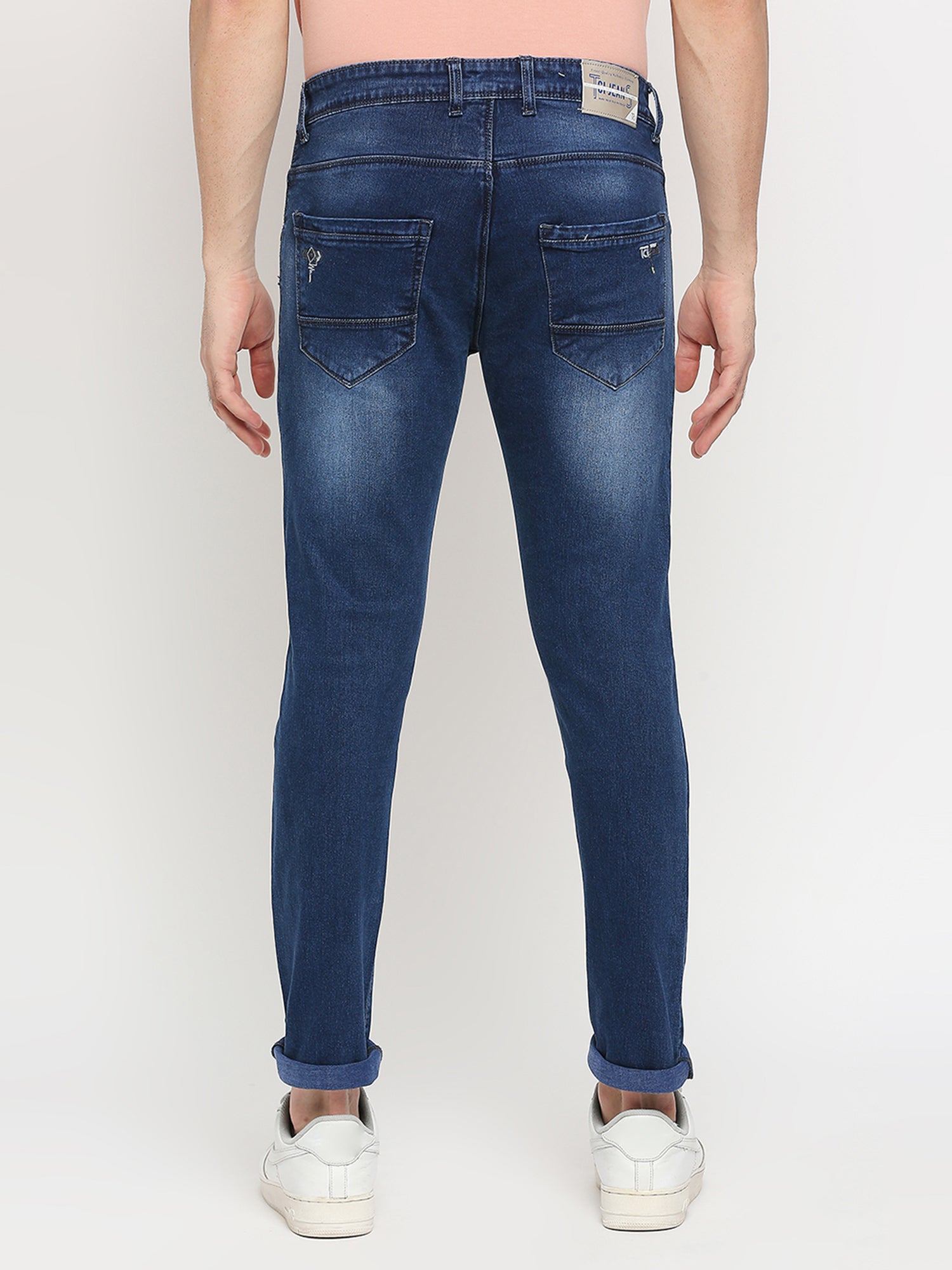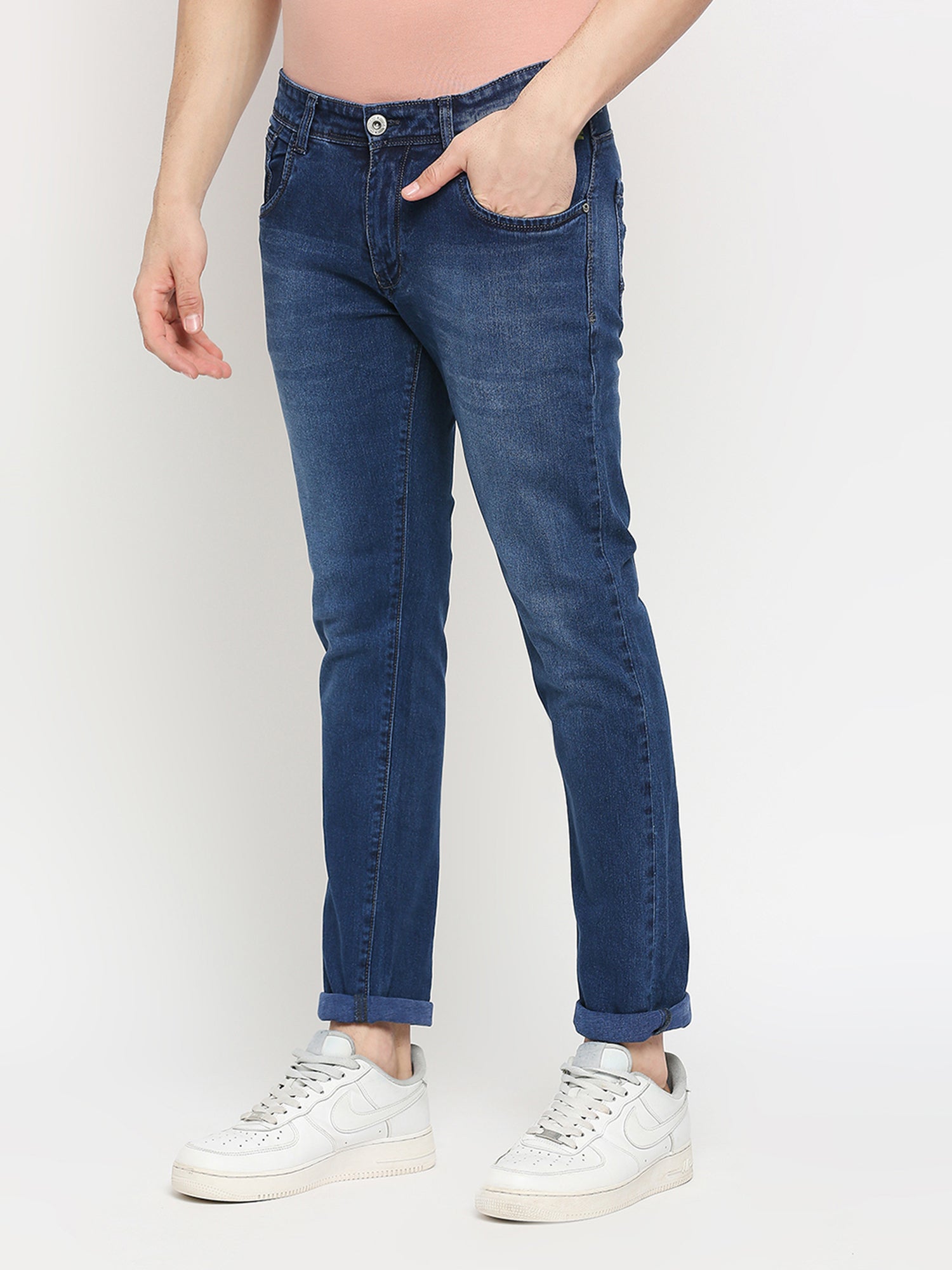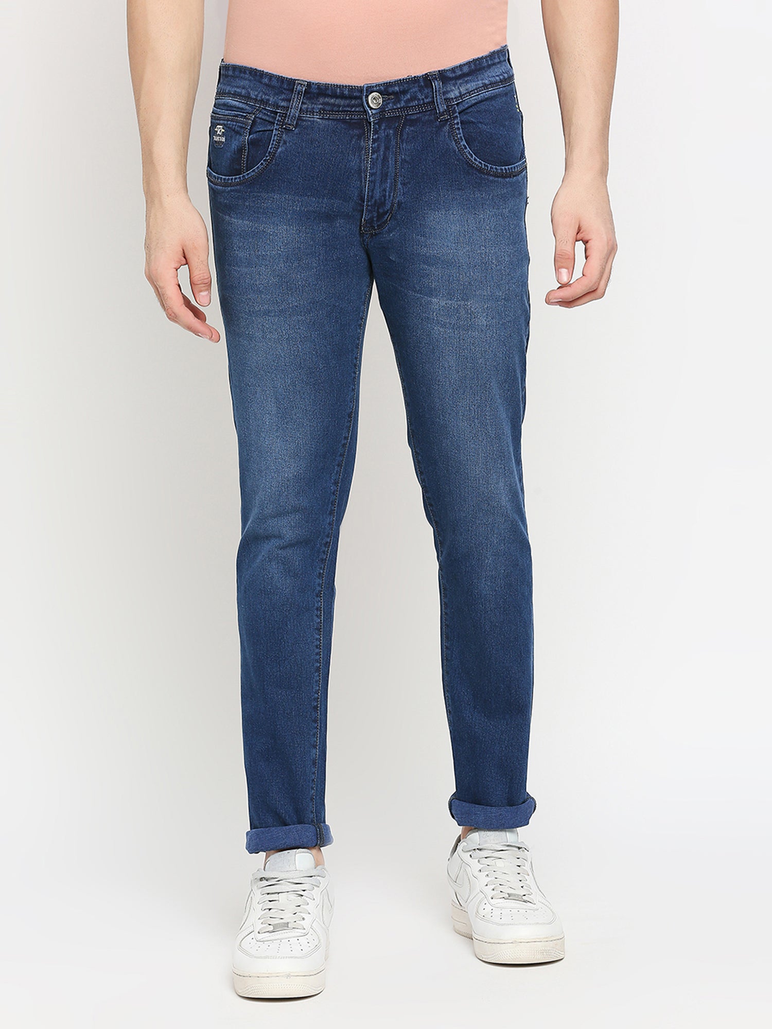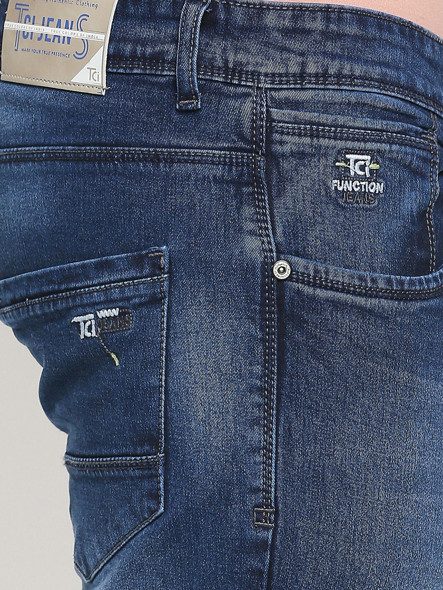 True Colors of India®️ (TCI) Mid blue whisker Stretchable Casual Denim Cotton Satin Jeans Slim Fit Mid Rise full Length(42 inch)