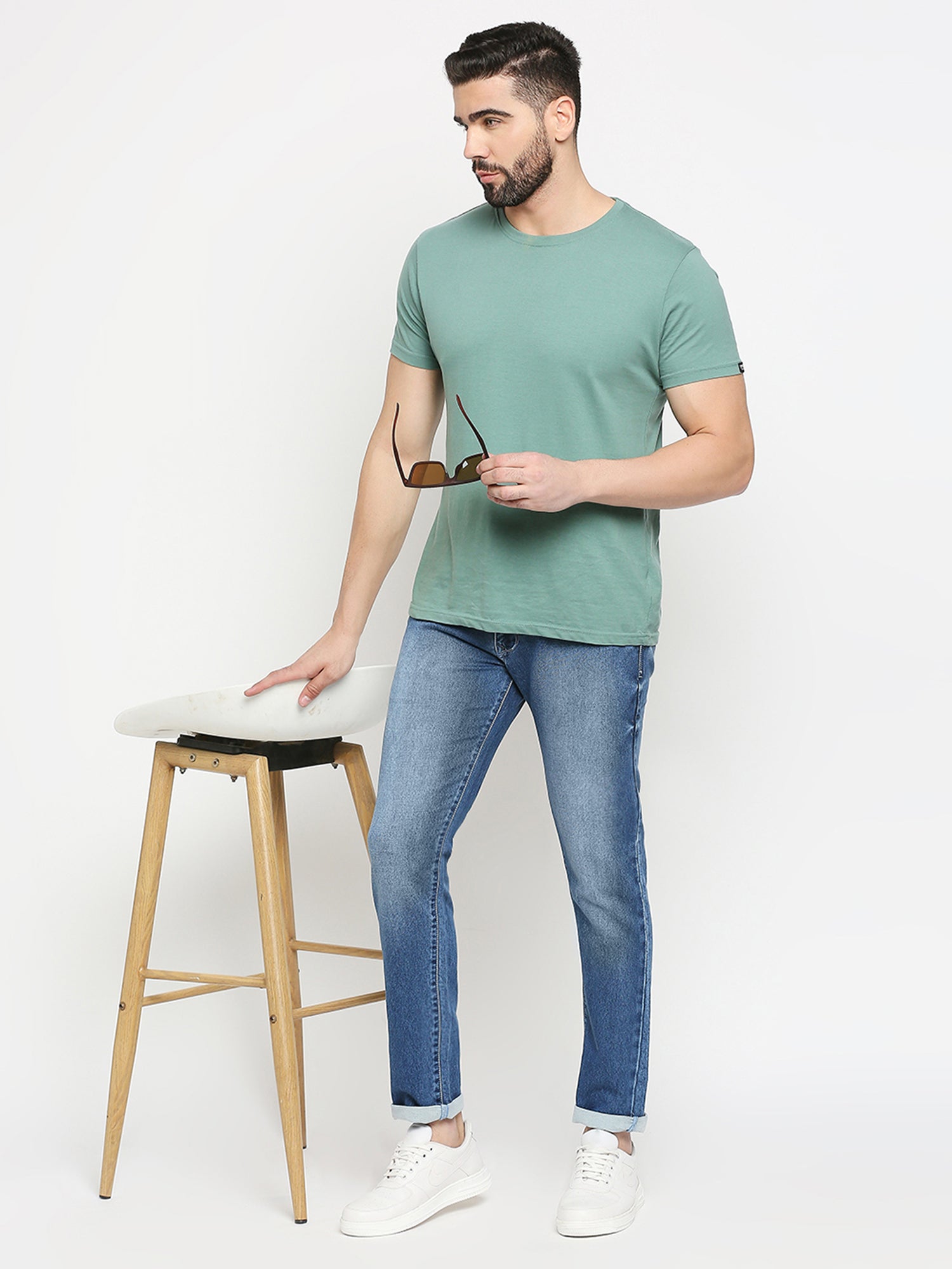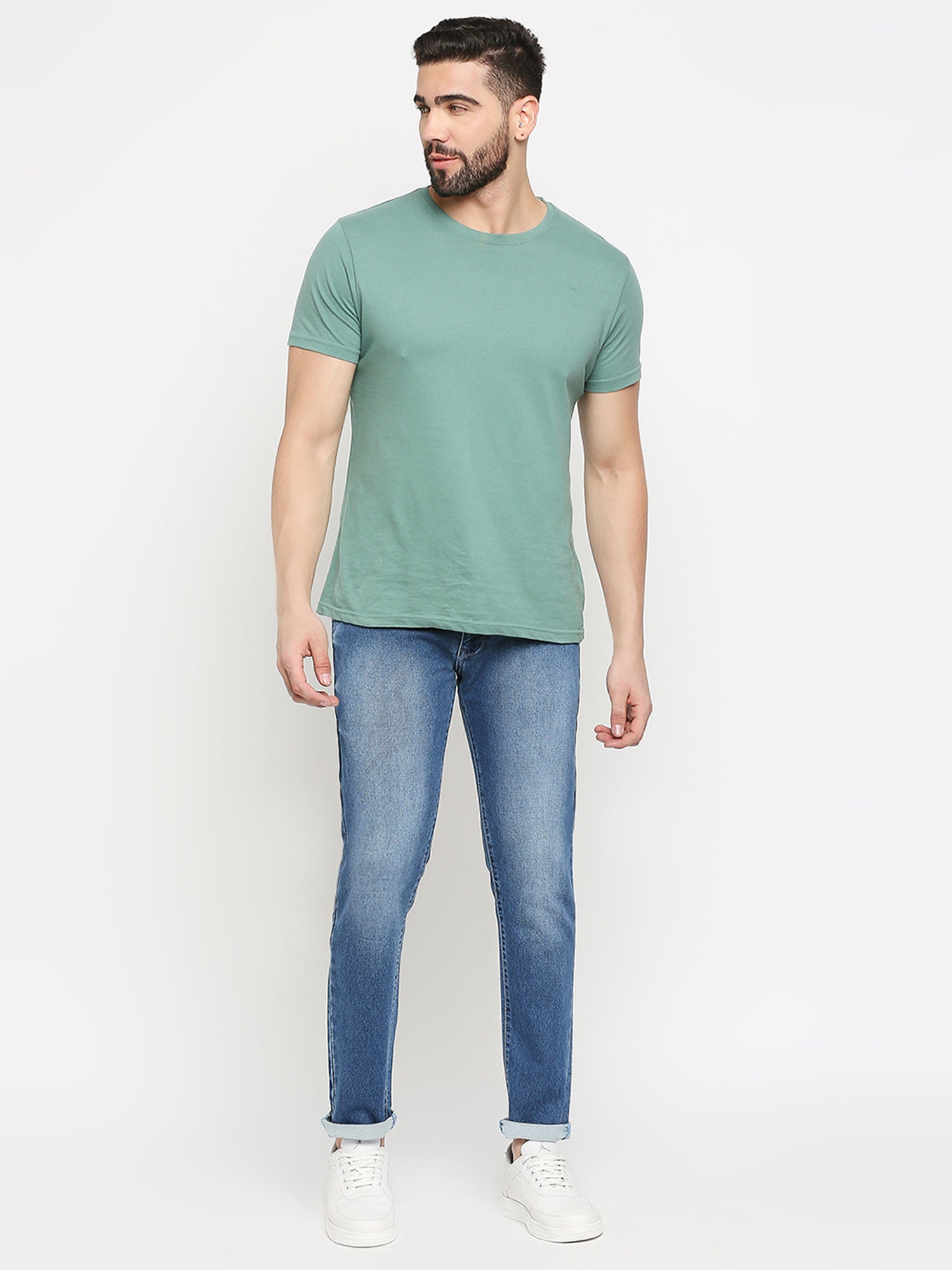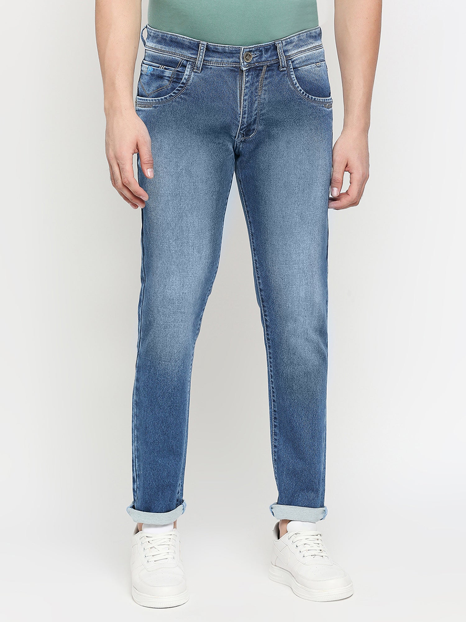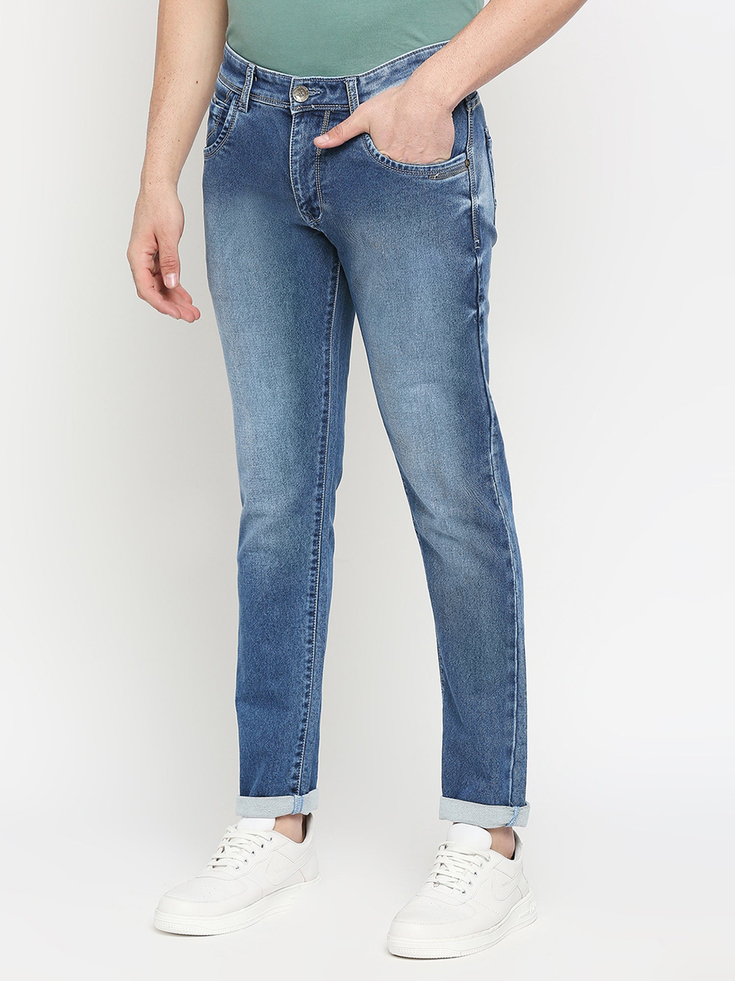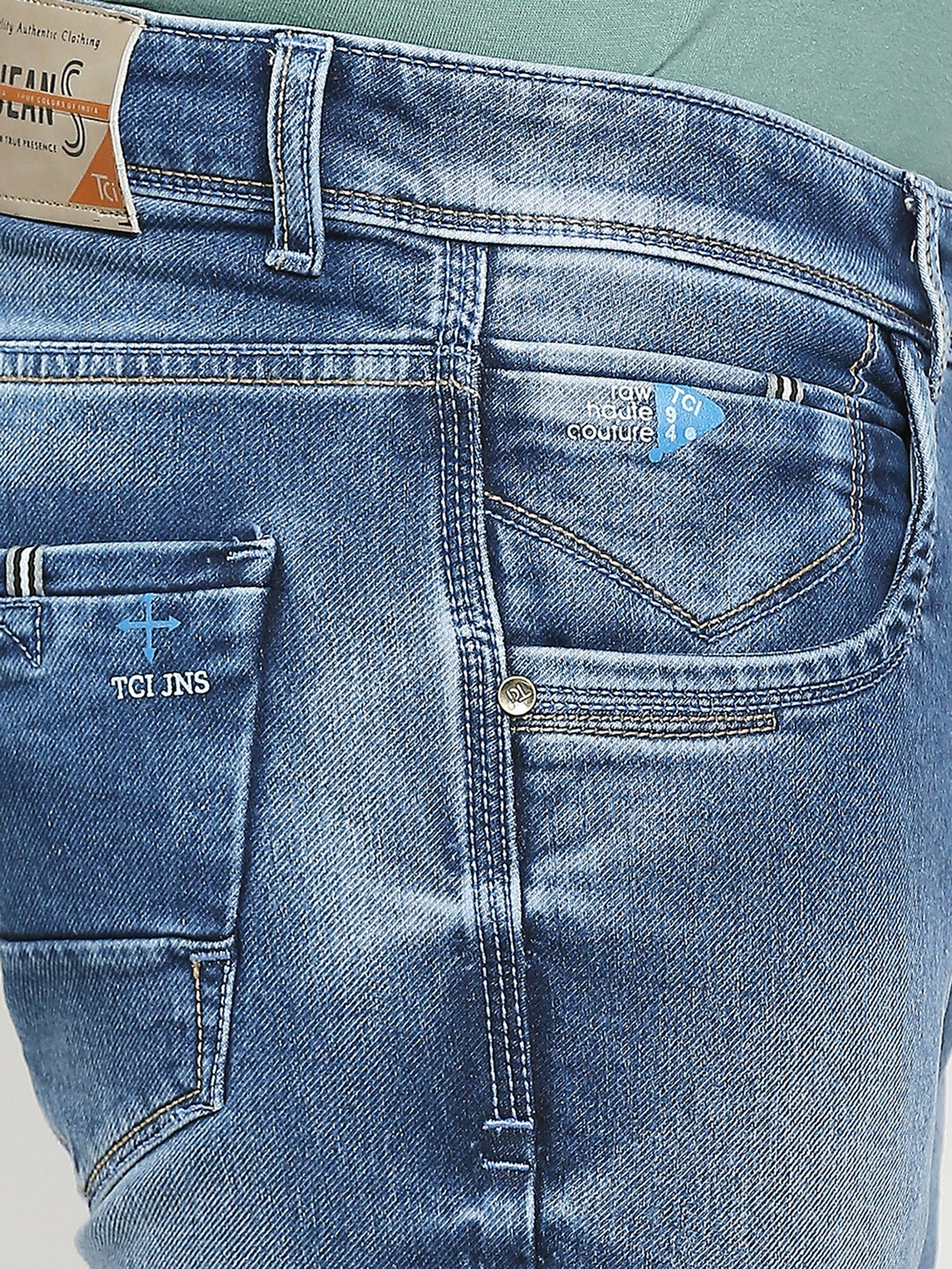 True Colors of India®️ (TCI) Mid blue whisker Stretchable Casual Denim Knitts Cotton Jeans Slim Fit Mid Rise full Length(42 inch)