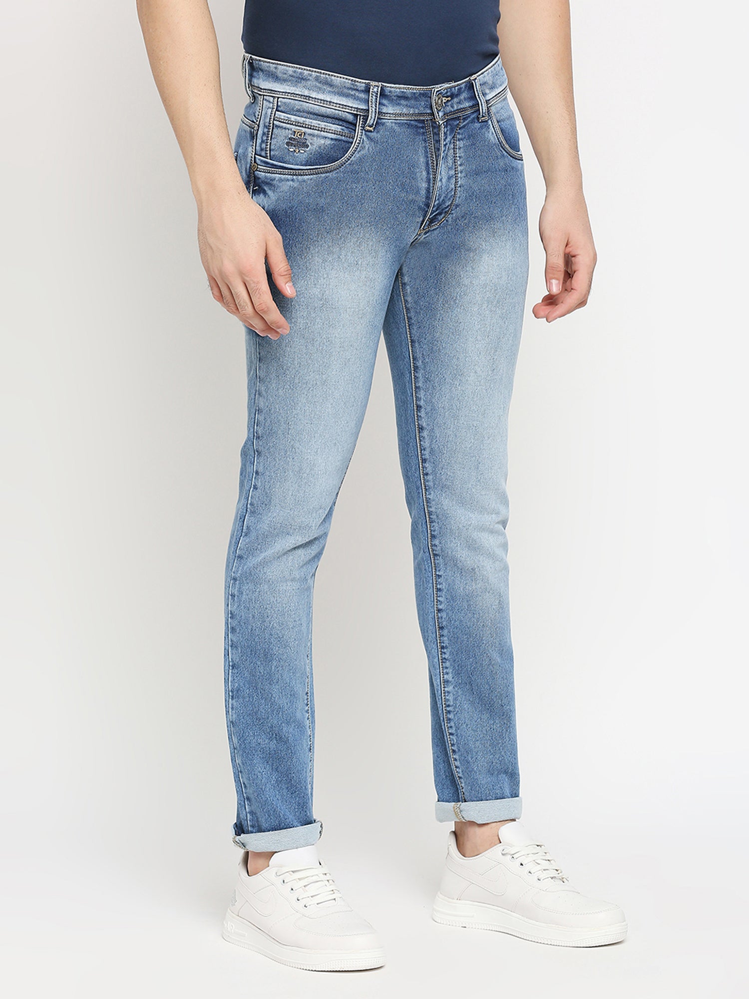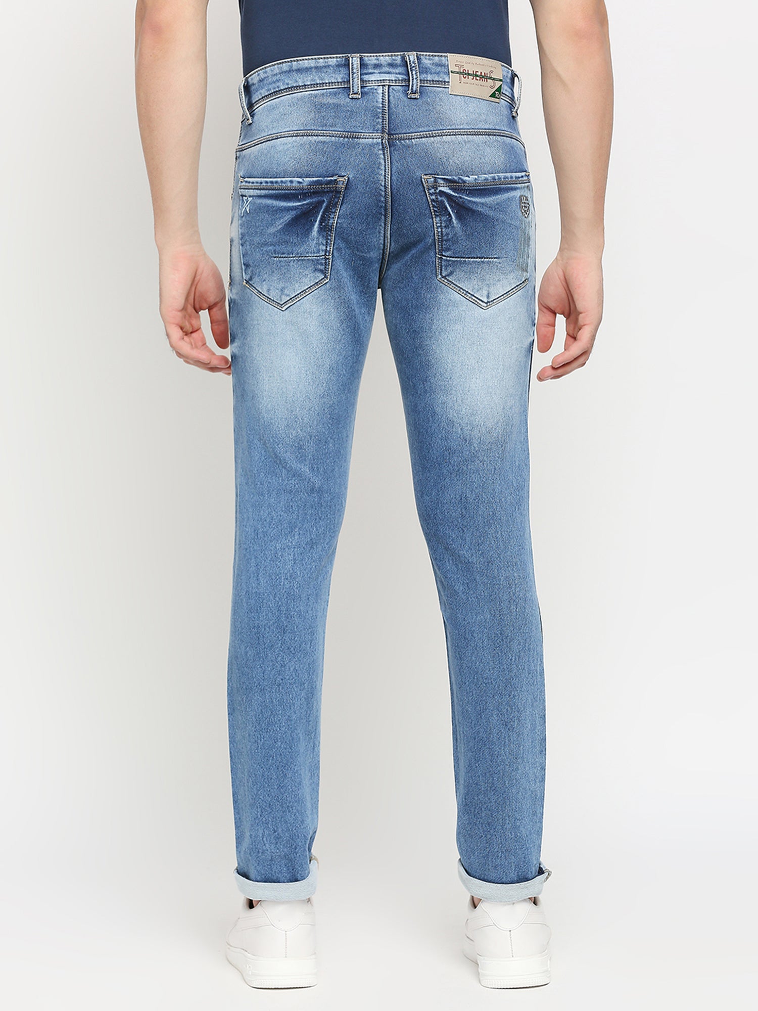 True Colors of India®️ (TCI) Mid blue whisker Stretchable Casual Denim Knitts Cotton Jeans Slim Fit Mid Rise full Length(42 inch)