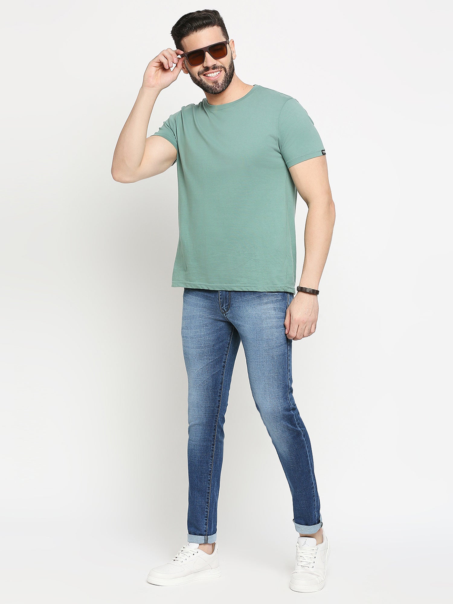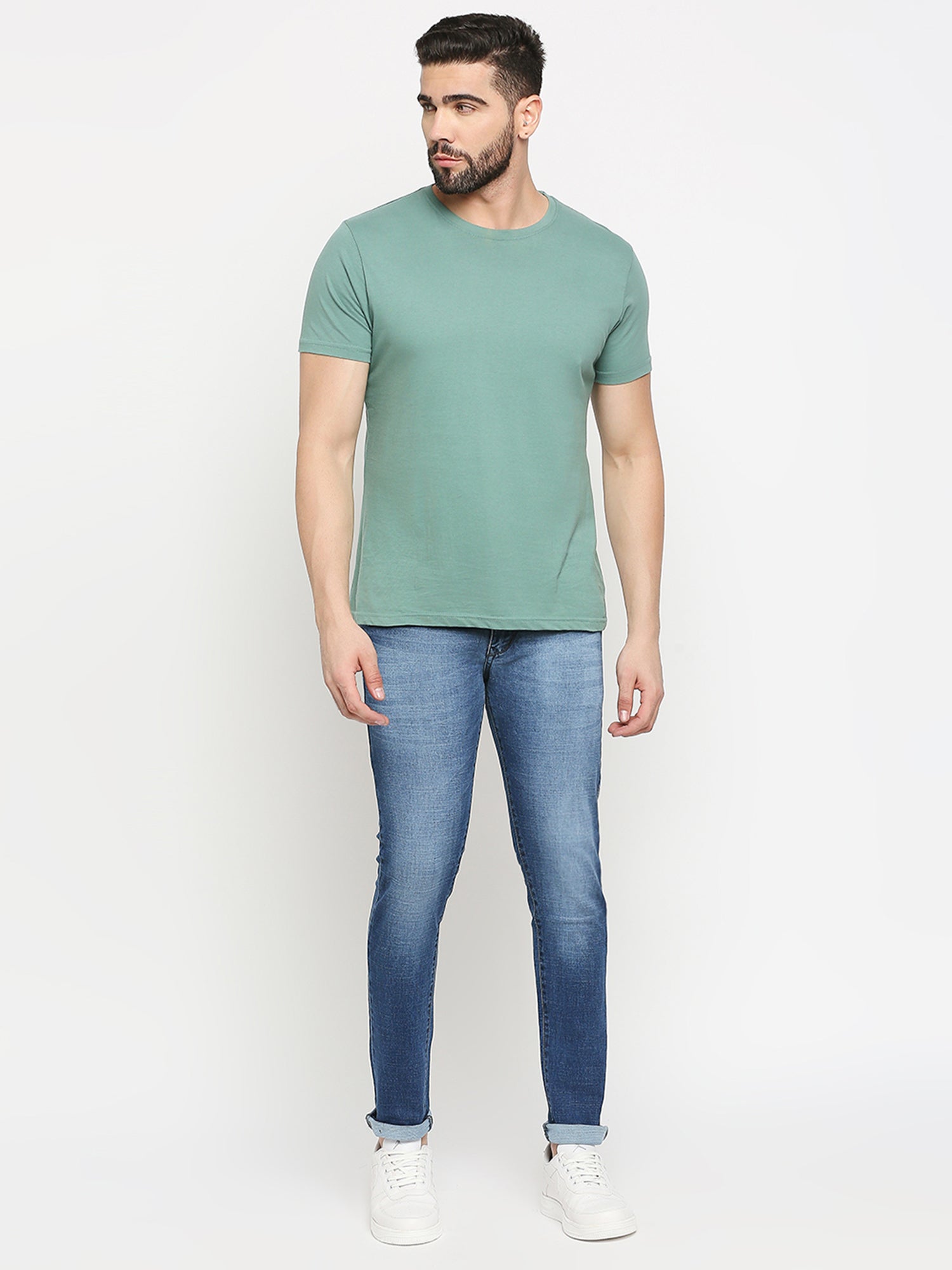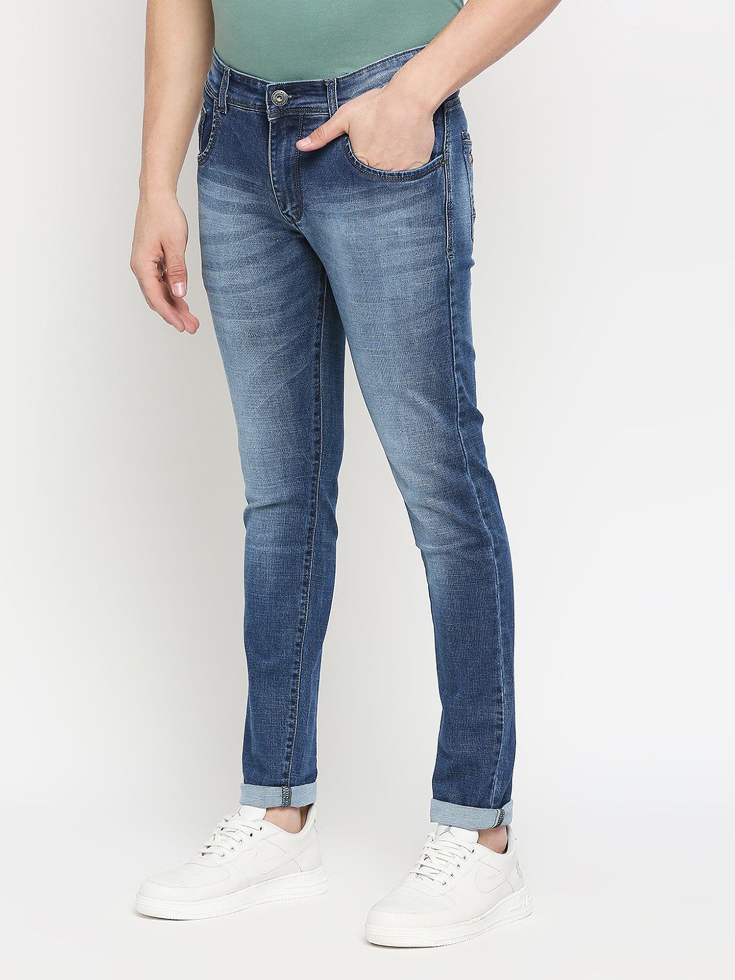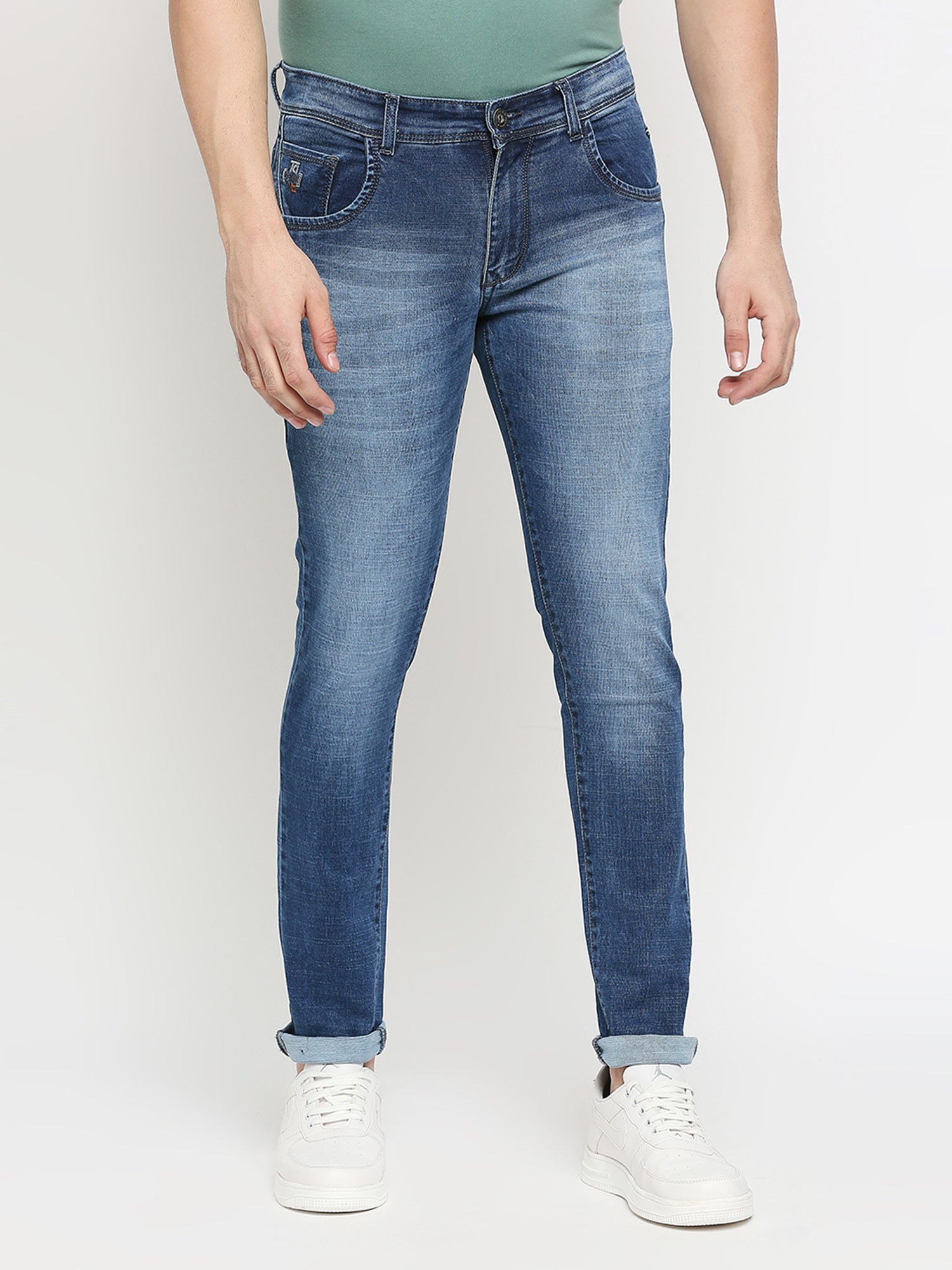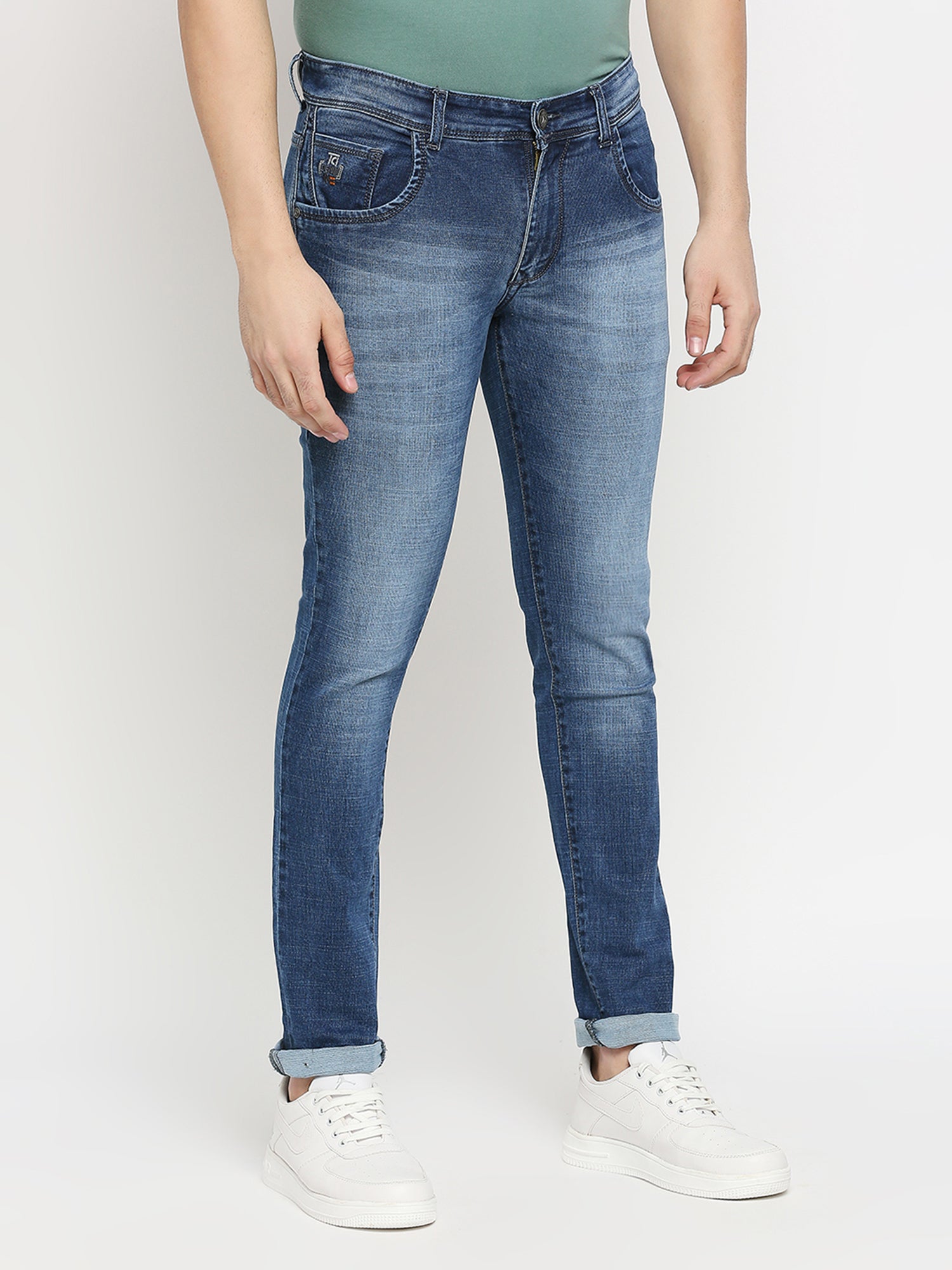 True Colors of India®️ (TCI) MidBlue whisker Stretchable Casual Denim Cotton dobby Jeans Slim Fit Mid Rise Full Length(42 inch)