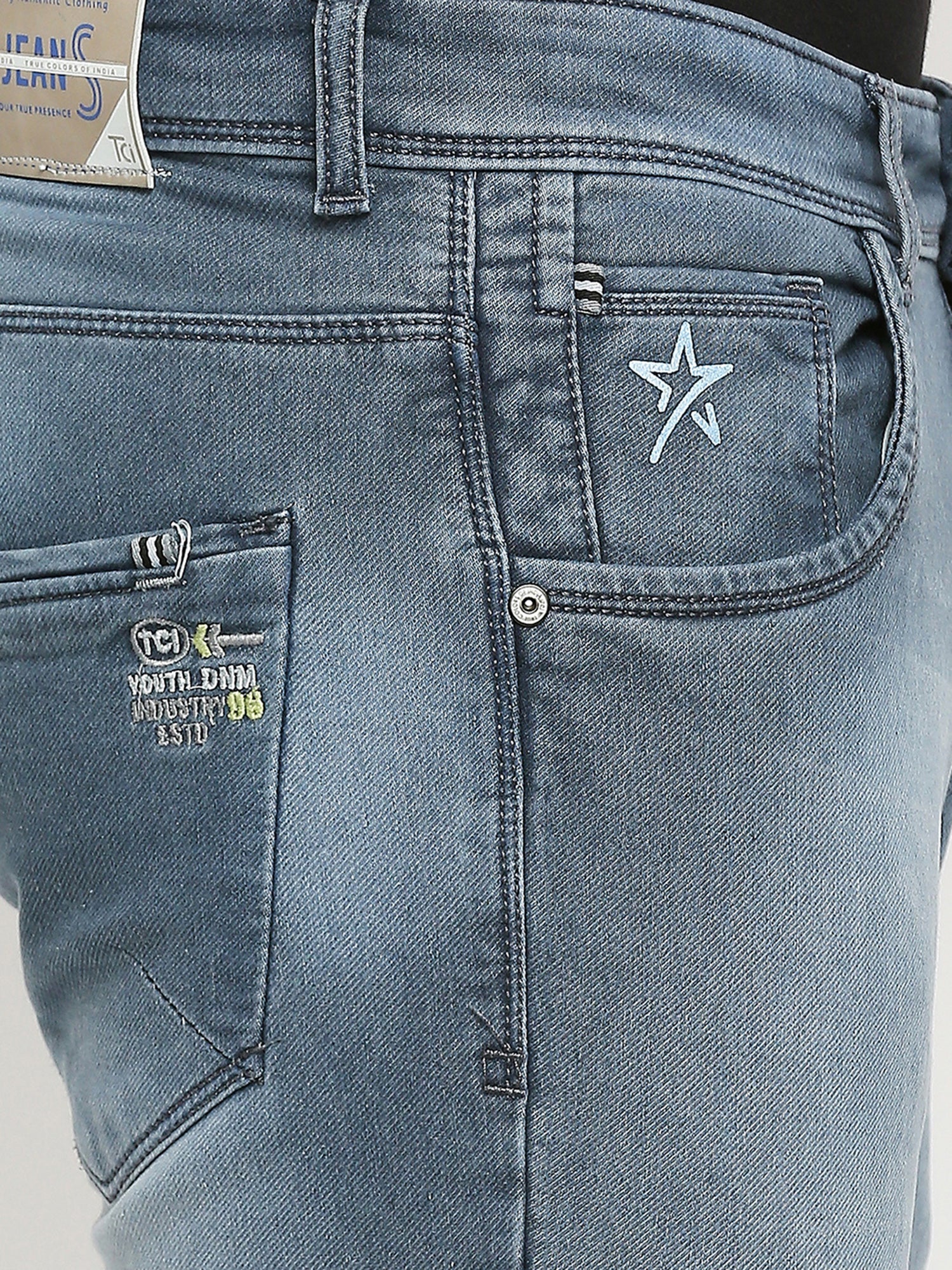 True Colors of India®️ (TCI) Steel Grey whisker Stretchable Casual Denim Cotton Satin Jeans Slim Fit Mid Rise full Length(42 inch)