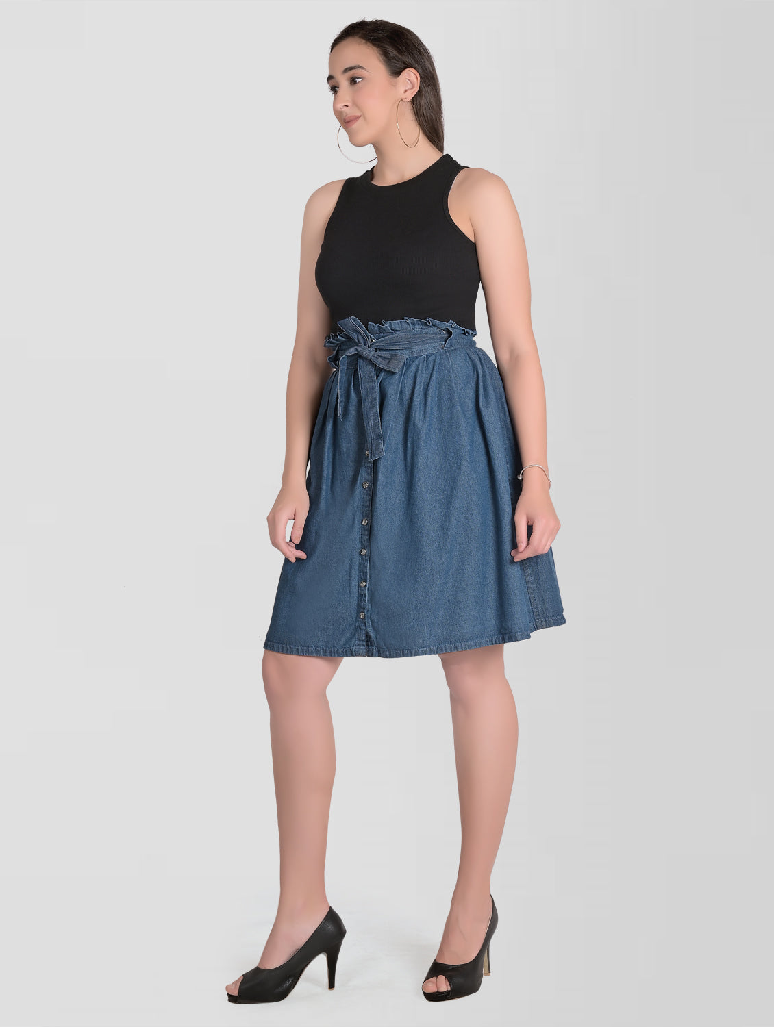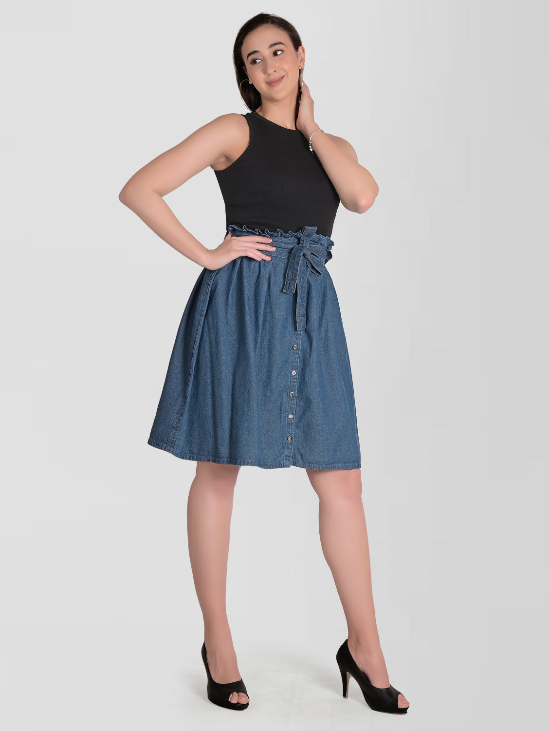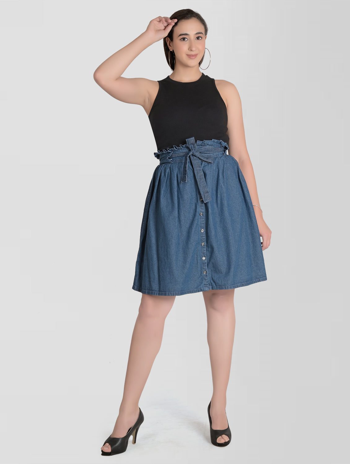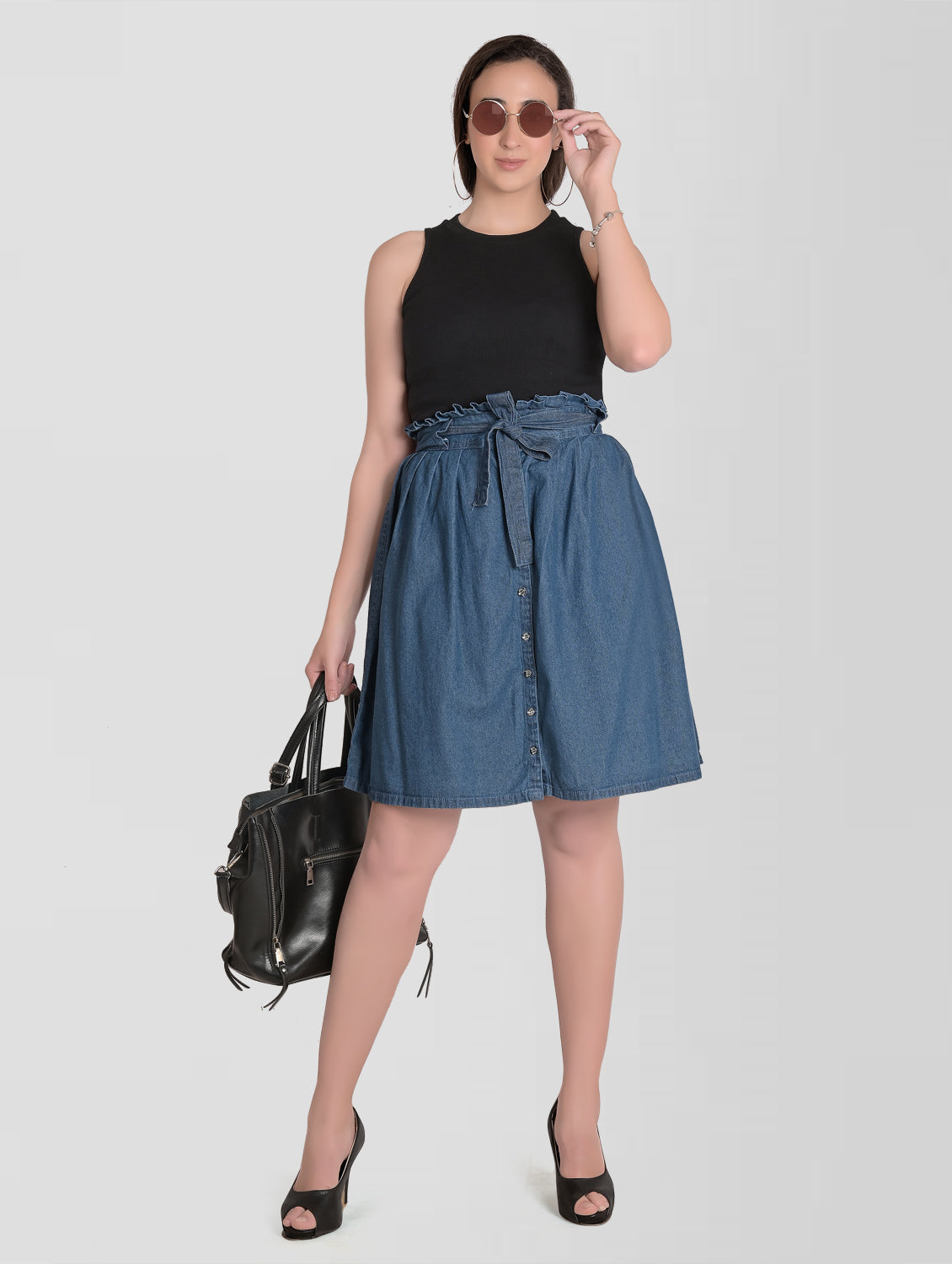 Cefalu®️ Women Blue Denim Cotton Skirt