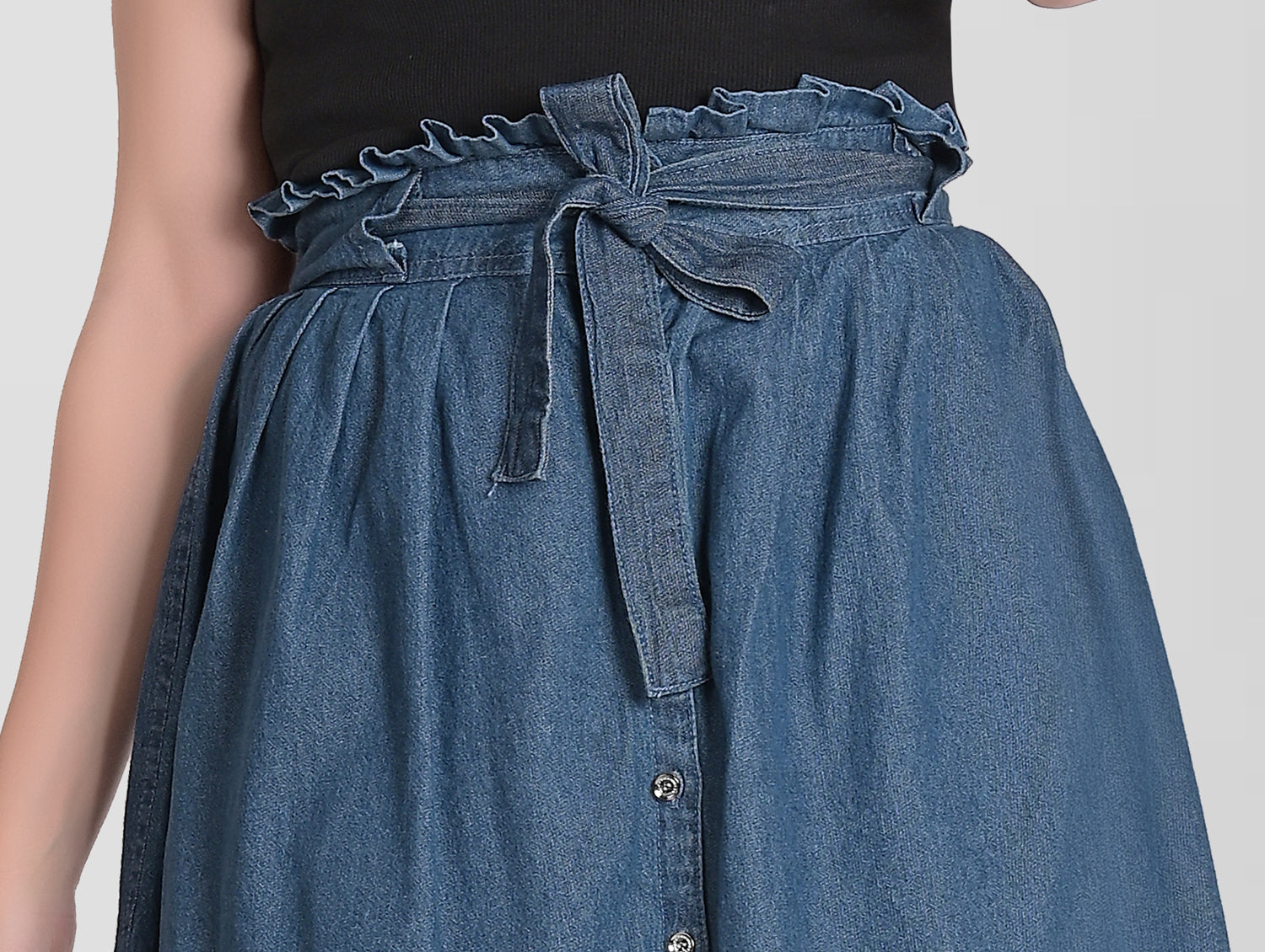 Elevate your denim collection with our Women Blue Denim Cotton Skirt. Made with the finest cotton, this calf-length skirt features a pleated design and waistband for a flawless fit. Experience comfort and style with every step