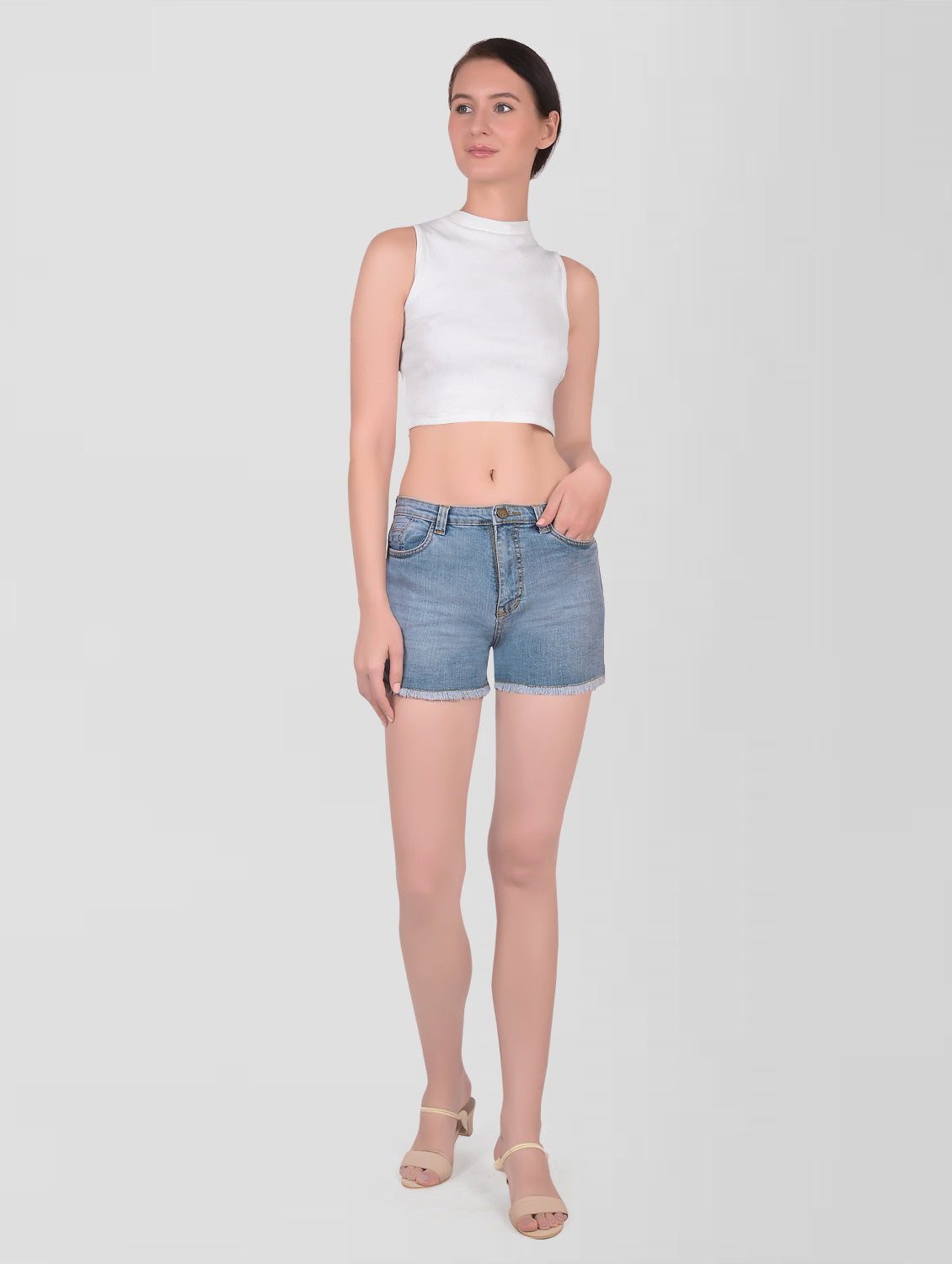 Stay comfortably stylish with these Women Light Blue Denim Shorts. Made from high-quality cotton denim, these mid-rise shorts offer a classic look with their 4-pocket design and button closure. Perfect for any casual occasion, these mid-thigh length shorts give you the perfect blend of comfort and style.