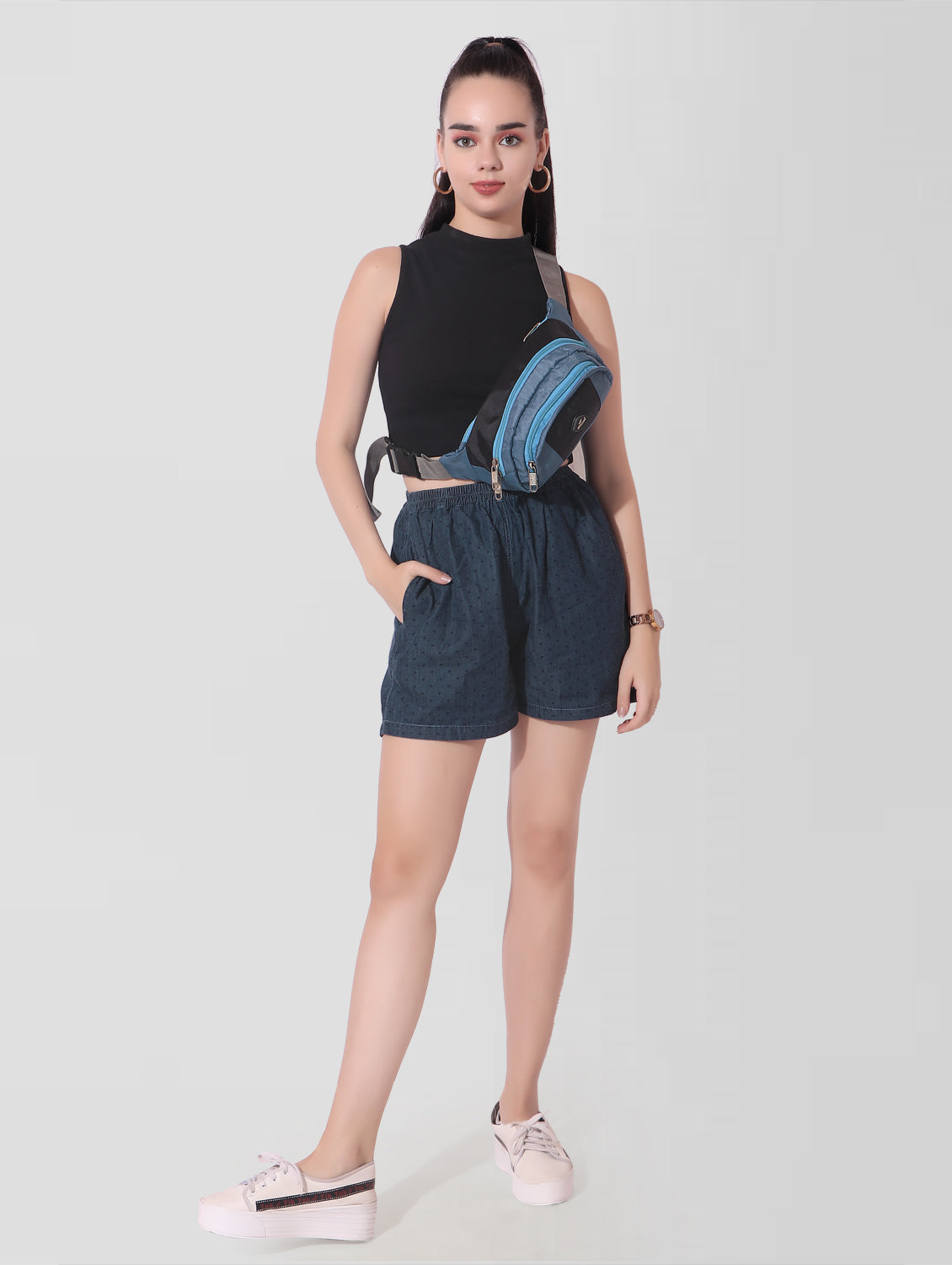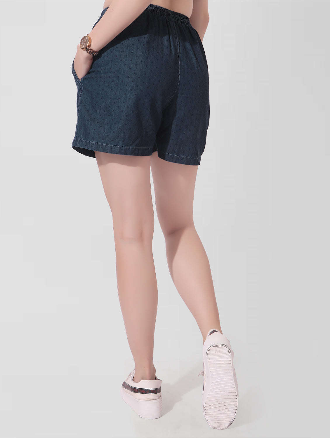 Get the perfect blend of style and comfort with our Women Printed Blue Regular Fit Cotton Denim Bermuda. These elastic shorts are not only fashionable with their beautiful design print, but also extremely comfortable for any occasion, whether it's going to the gym or just relaxing on your day off. Upgrade your casual look with our Denim world Bermuda.