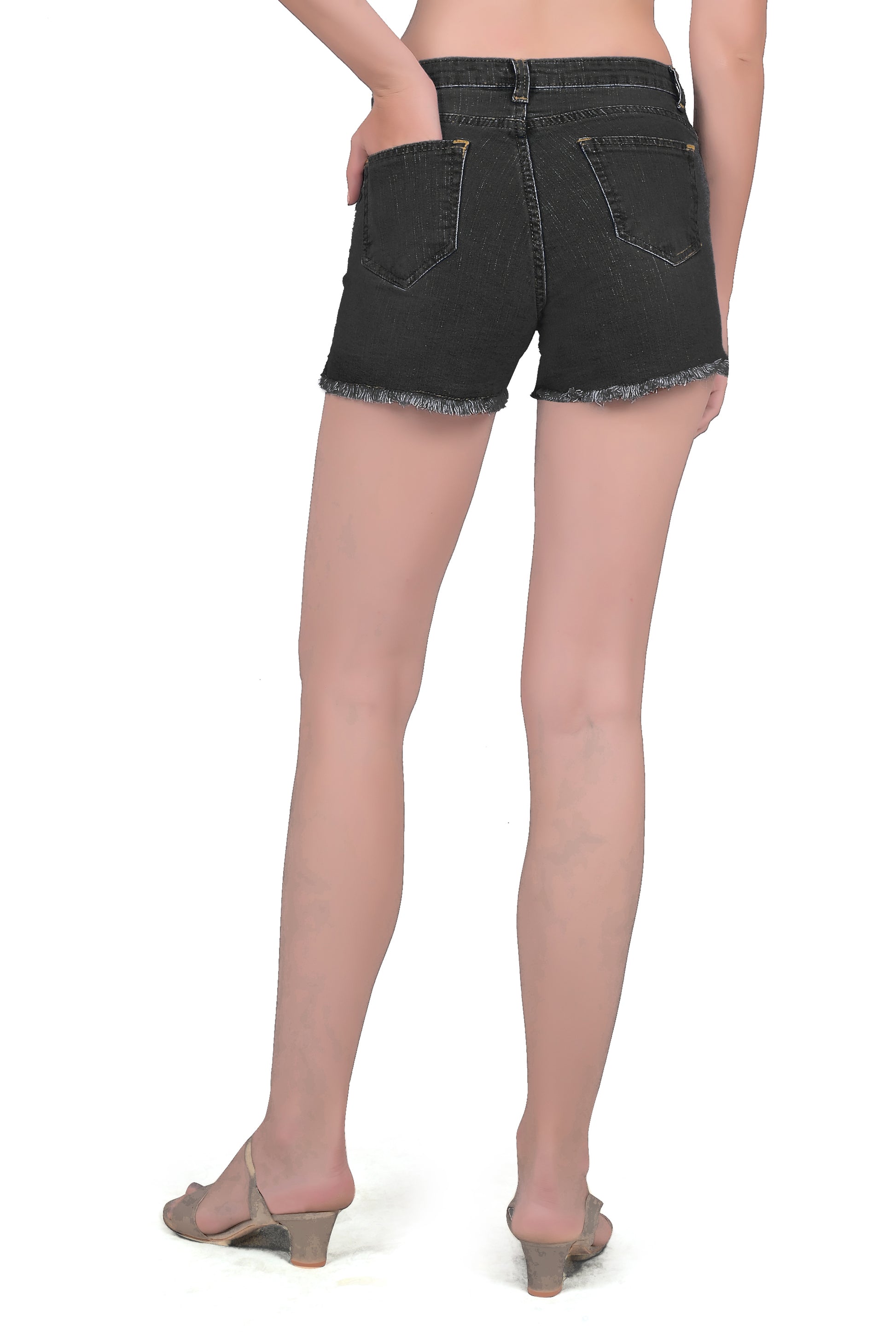 Cefalu®️ Women's Skinny Fit Black Denim Shorts Stretchable